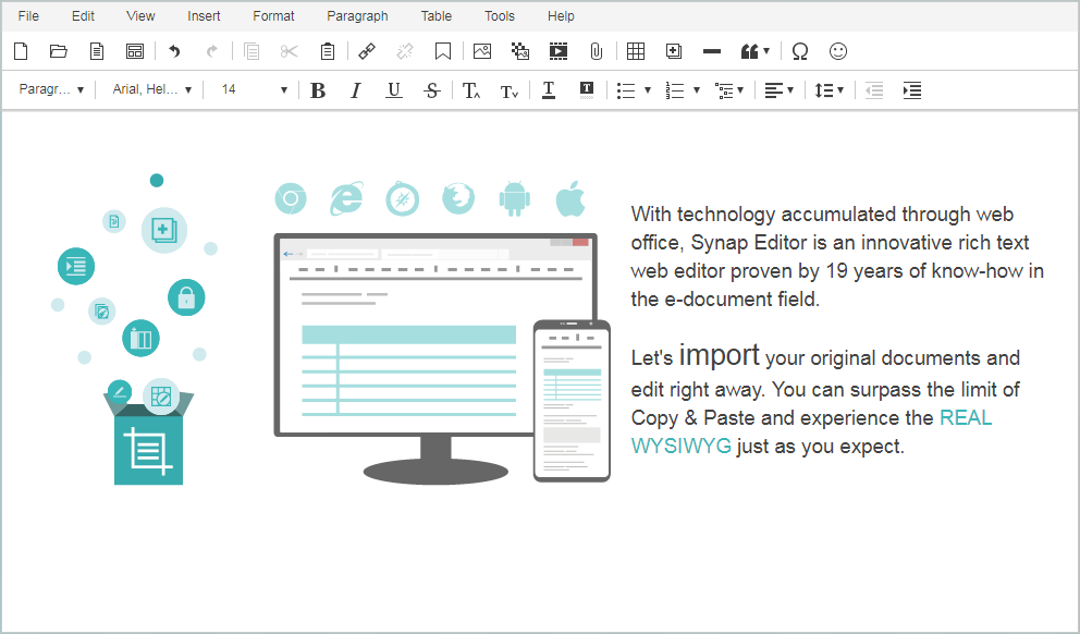 TinyMCE is a platform independent web-based JavaScript HTML WYSIWYG editor control released as open source under LGPL.