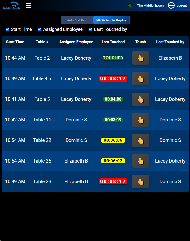 Table Touch helps restaurants stay on top of every table by showing exactly when staff last visited and where attention is needed — in real time.