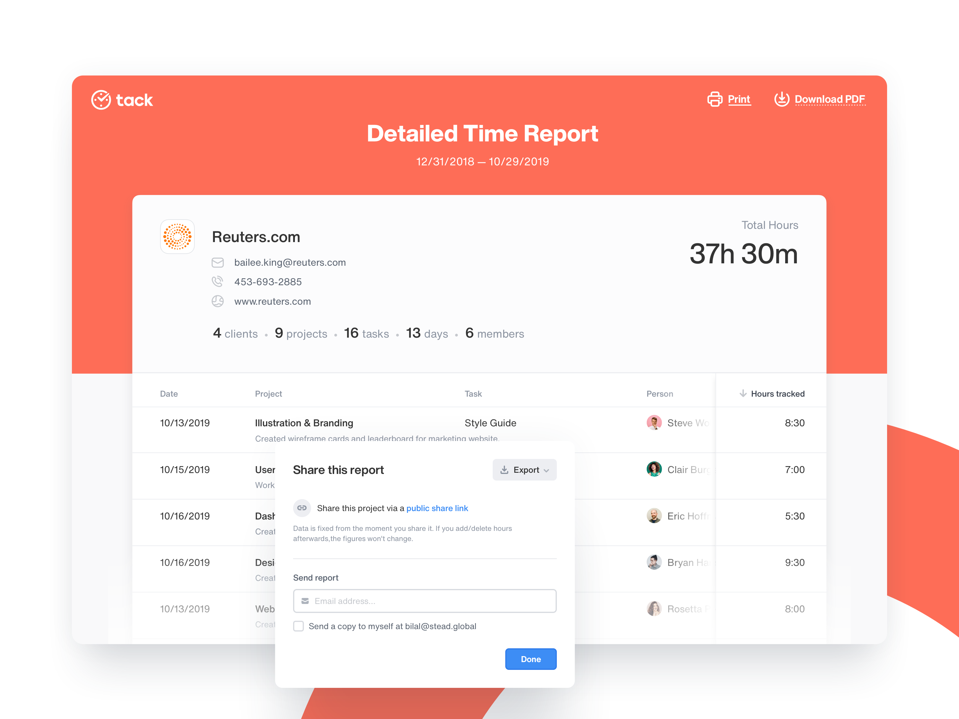 Toggl Track is a flexible cloud-based online time tracking solution for teams of one to 1000. It allows users to track time on projects and analyze profitability and productivity, and is available on multiple platforms.