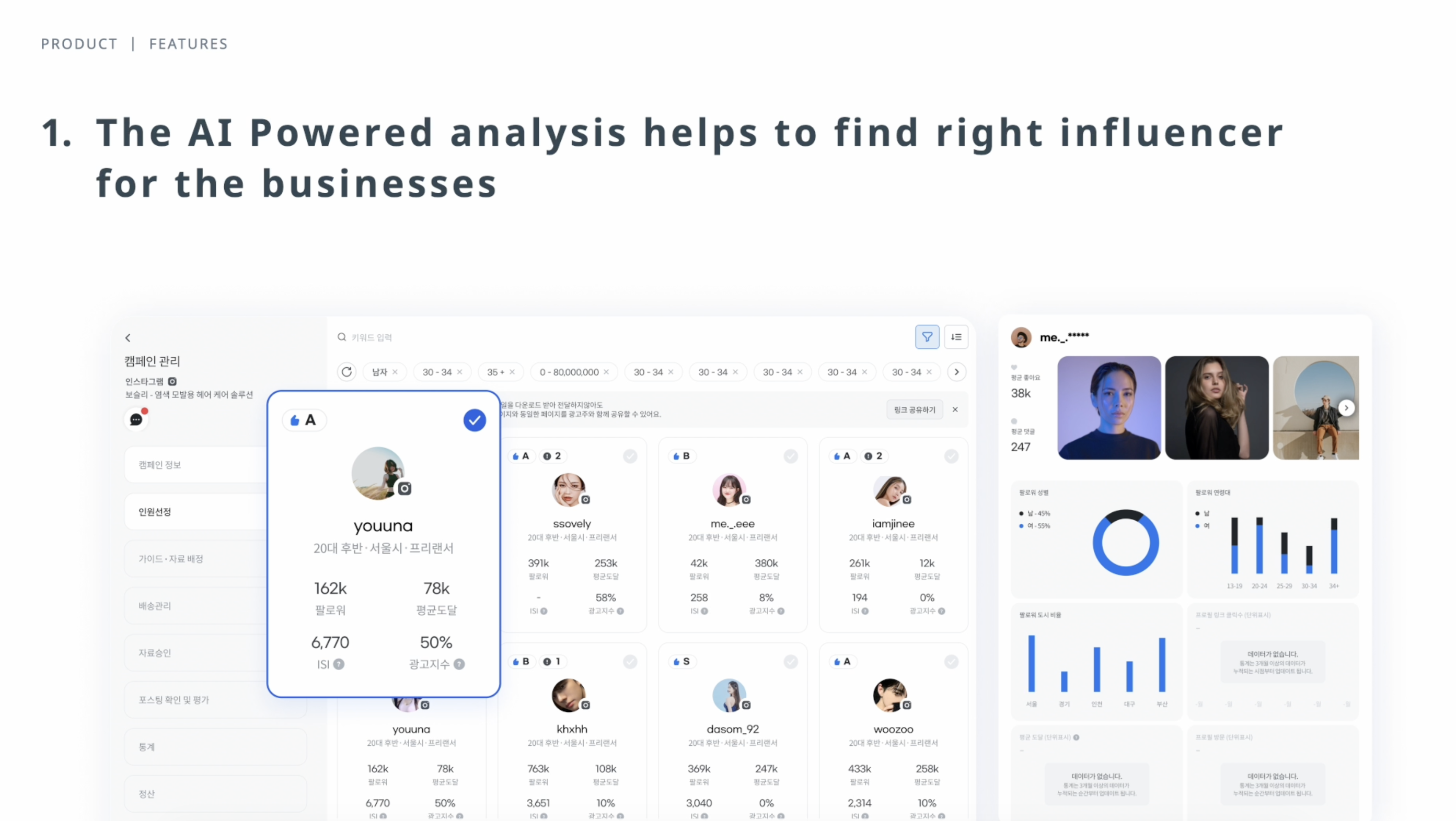 Find quality niche influencers thanks to the keyword and location search. Narrow down your results based on your key performance metrics such as following count or engagement rate. And you're good to go!