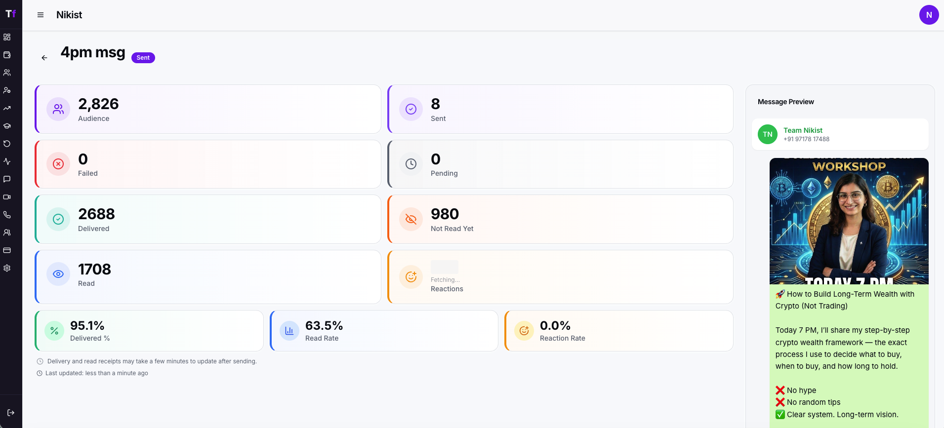 Whatsapp message sending speed can be better but still it is working smoothly. Review collected by and hosted on G2.com.