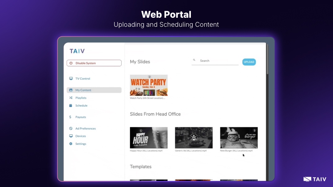Yodeck is a cloud base digital signage solutionthat enables you to design and schedule your monitors easily from the web, using your computer, tablet or smartphone.