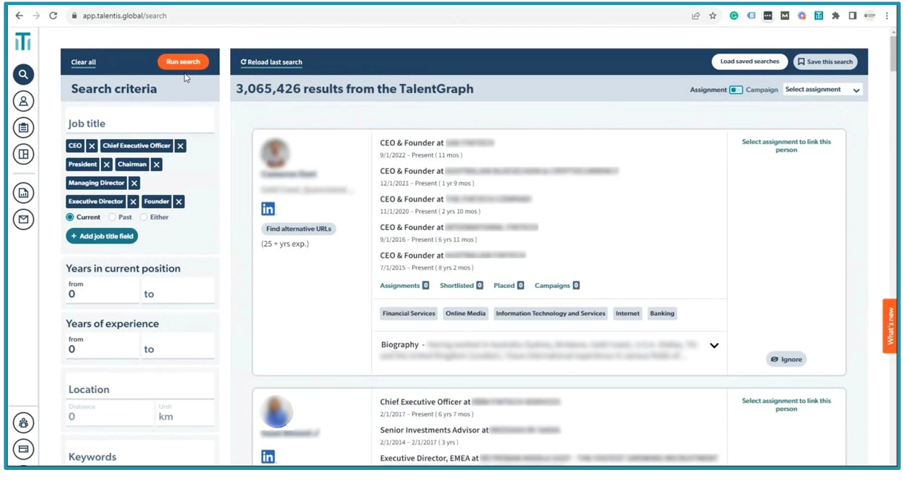 We can track all candidates' professional experience, notes, touchpoints, profiles and past opportunities —It’s a true executive search CRM. Everyone in our organisation can easily