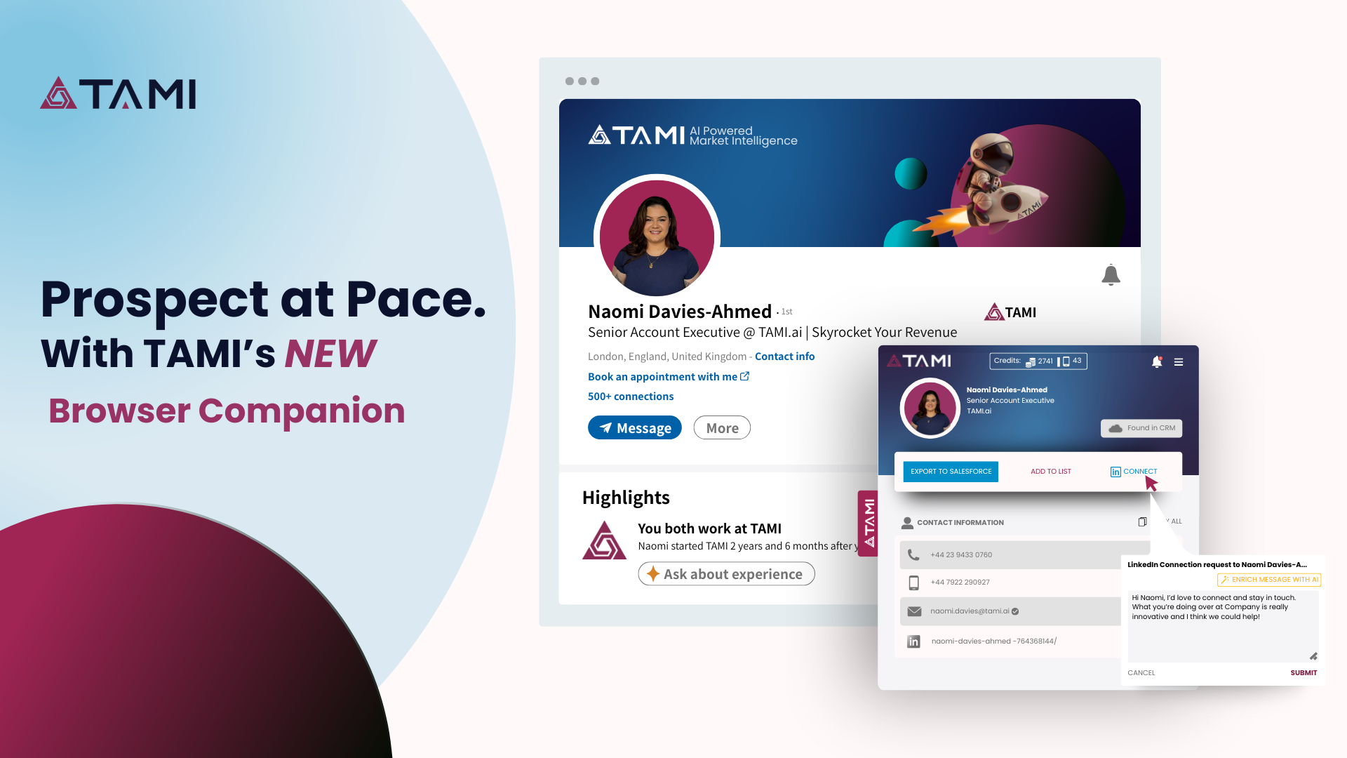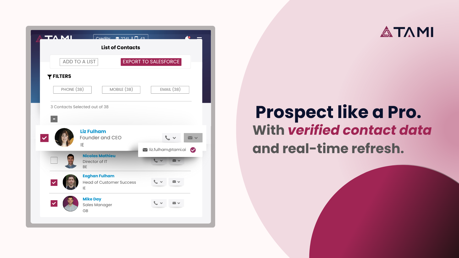 The search part is really good in Tami. You can filter and find new leads real easy. The user experience of the tooling is next tot that really clear. For example it's easy to find which technologies and partner they use Review collected by and hosted on G2.com.
