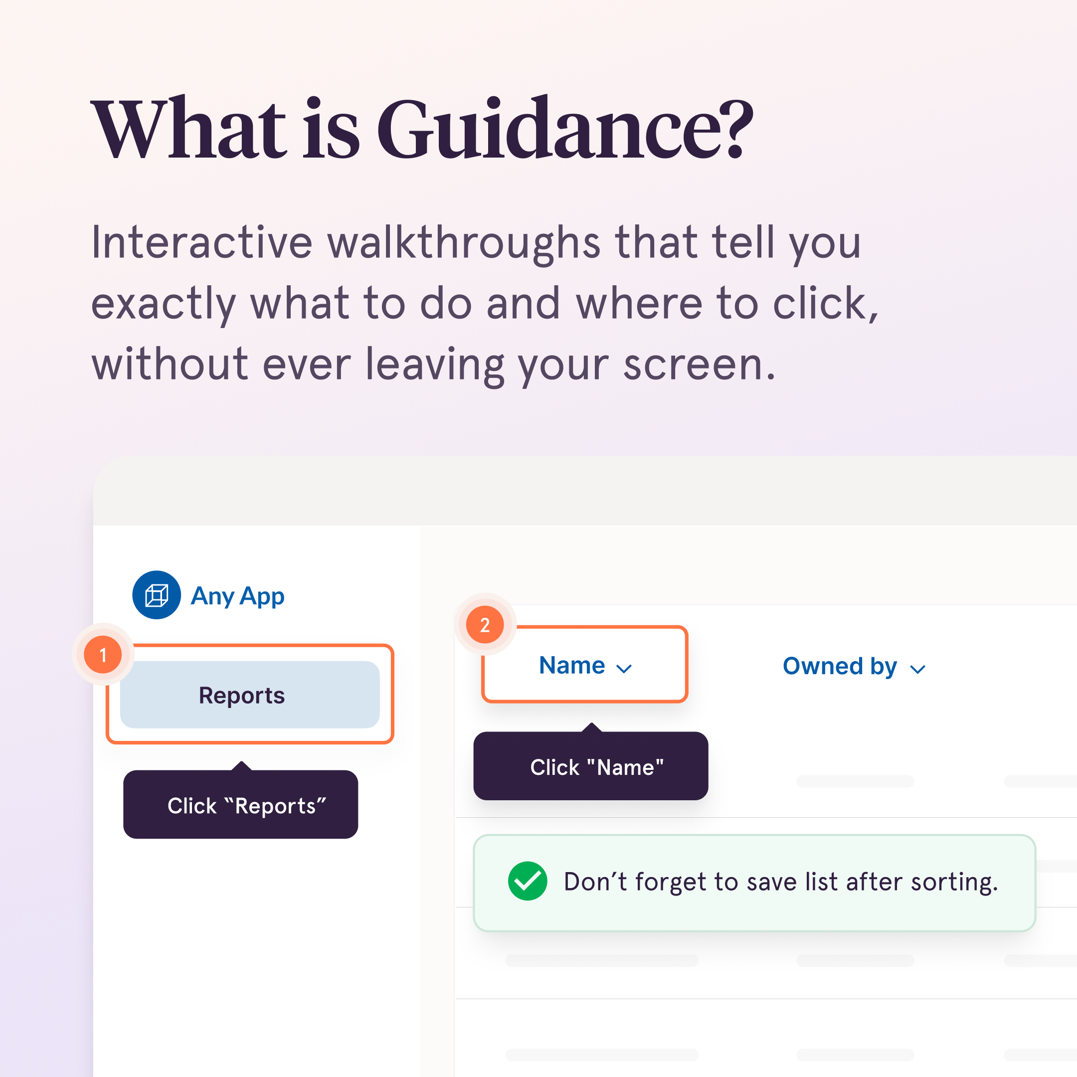 The Guide Me feature is the core of Tango's brilliance and an excellent way to deliver training. It’s fully interactive, presents steps clearly, and allows users to learn by doing in the live application. This active, in-the-moment learning approach has proven far more effective than static manuals.