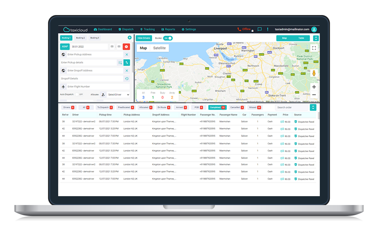 TaxiStartup is a cloud-based dispatch solution that allows you to manage your business with tools and features such as android and iOS device compatibility, GPS technology to track and monitor your vehicles, automation tools, and more.