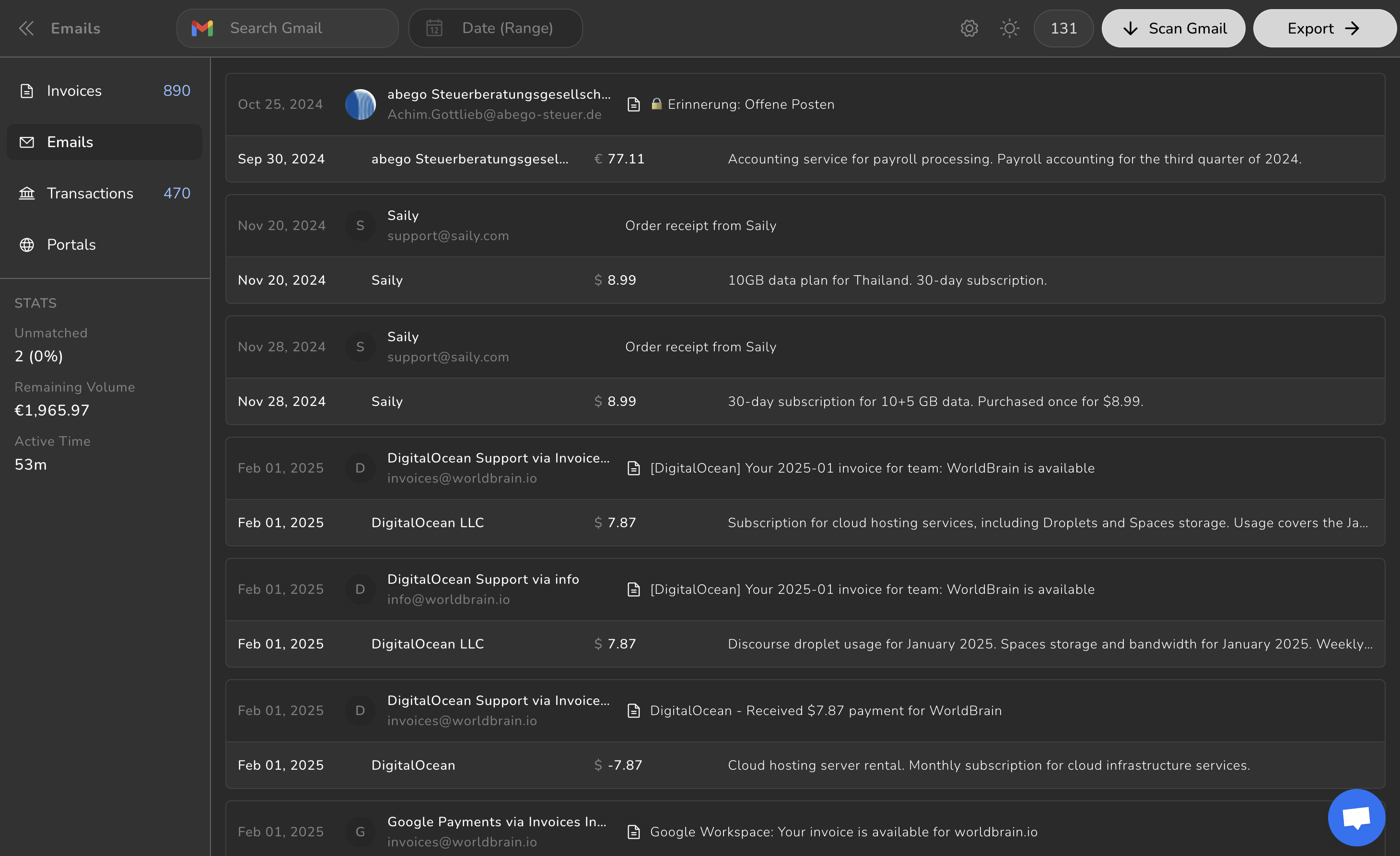 I already had half of my invoices ready in about 1min of work and with their browser extension it was super fast to fetch the rest of my invoices from my portals.