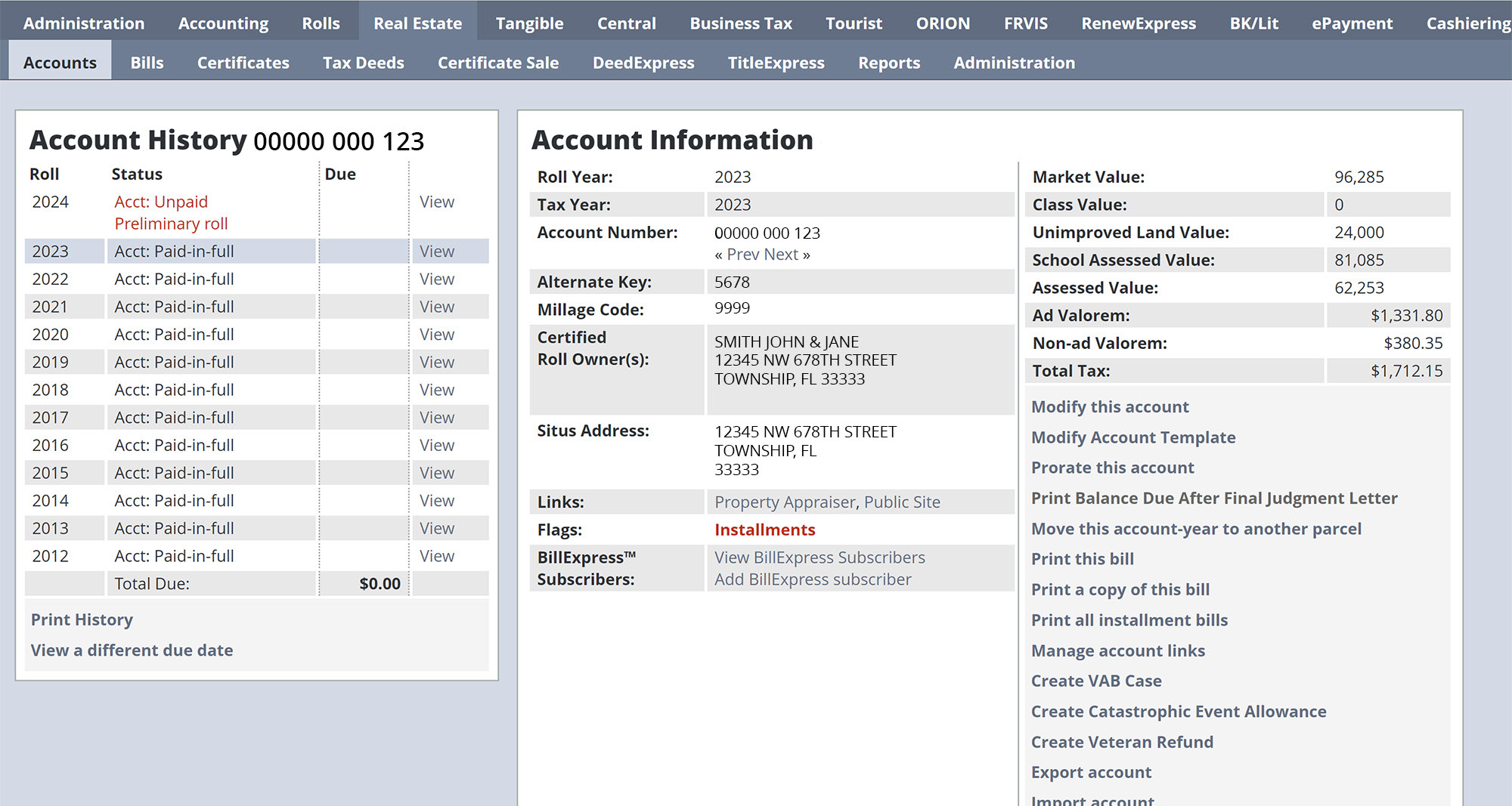 The BS&A Tax application bills and collects on property taxes, and provides a variety of tools to aid in balancing, disbursement, and settlement with the County.