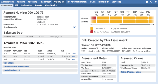 Tyler Enterprise Assessment & Tax is the industry’s most comprehensive solution for assessment administration, computer-assisted mass appraisal, and tax billing and collections. Use Tyler Enterprise Assessment & Tax to effectively manage vital property assessment data; generate accurate values by performing rigorous analysis and calculations; ensure fair, uniform, and equitable market values for property taxation; and extend, collect, and distribute property taxes and related charges throughout your jurisdiction