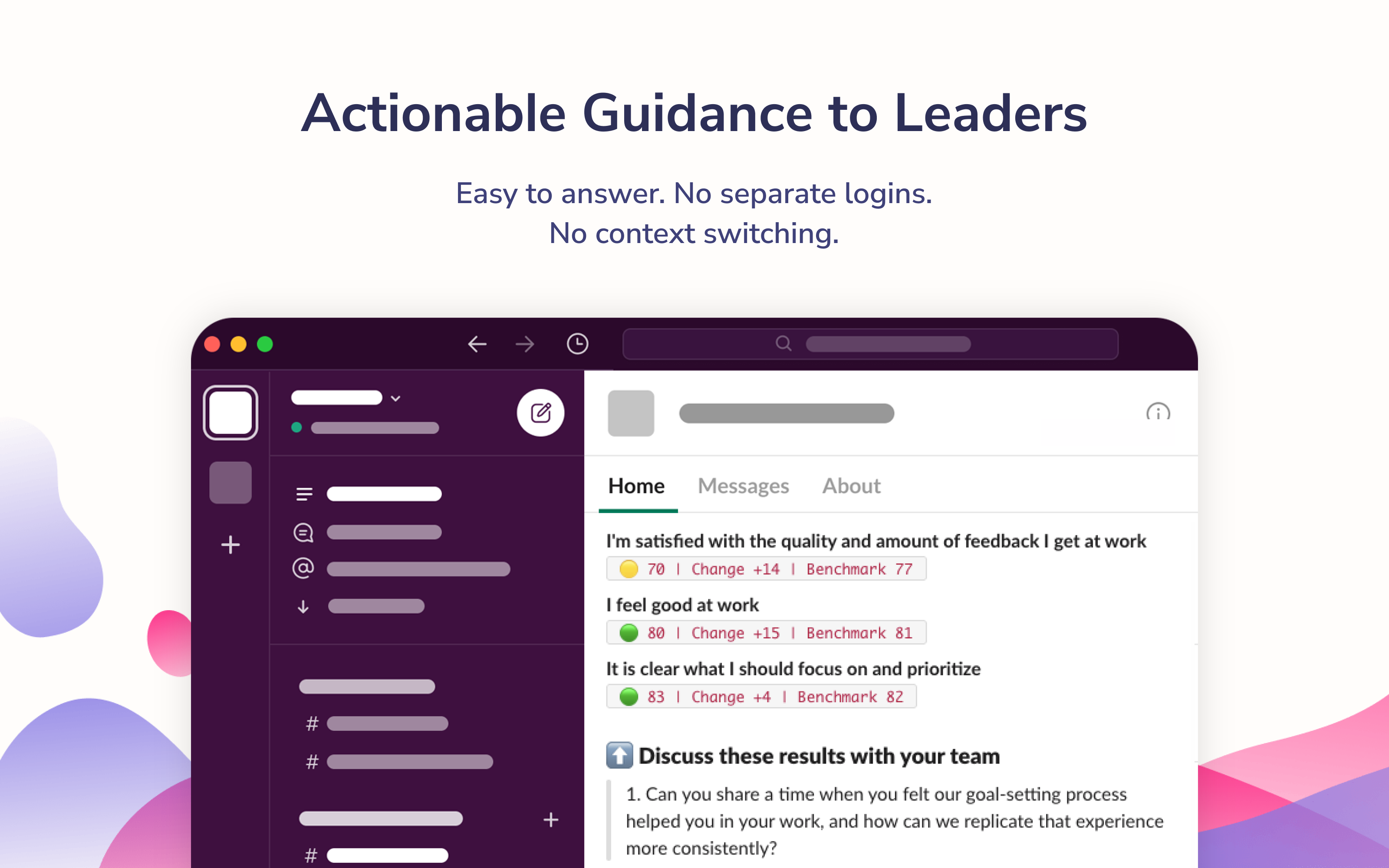 From data collection to receiving insights, action suggestions and 1-to-1 notes capturing, your employees can do it all without leaving Slack