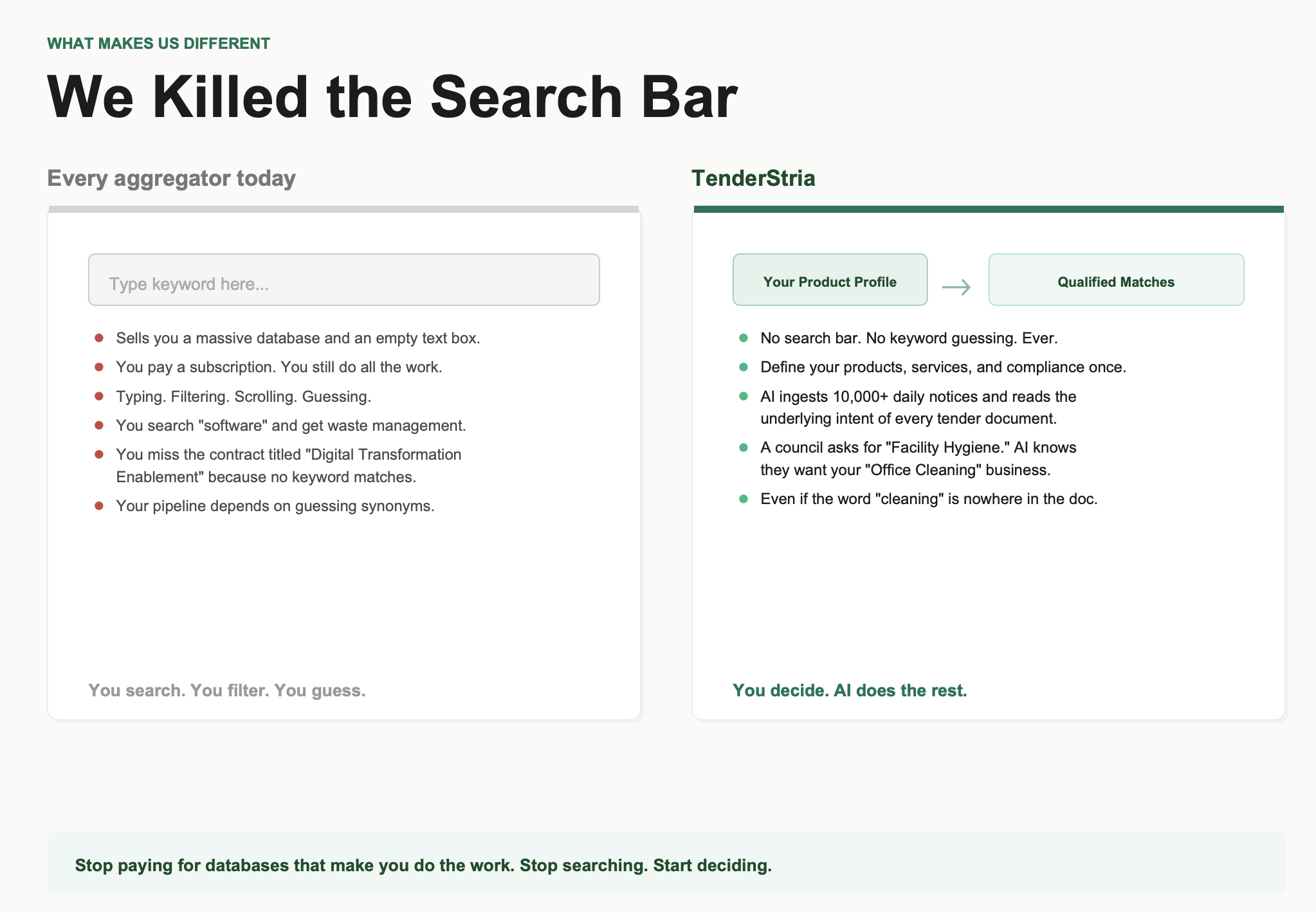 Tenderstria Demo - No Search Bar. No Keyword Guessing.