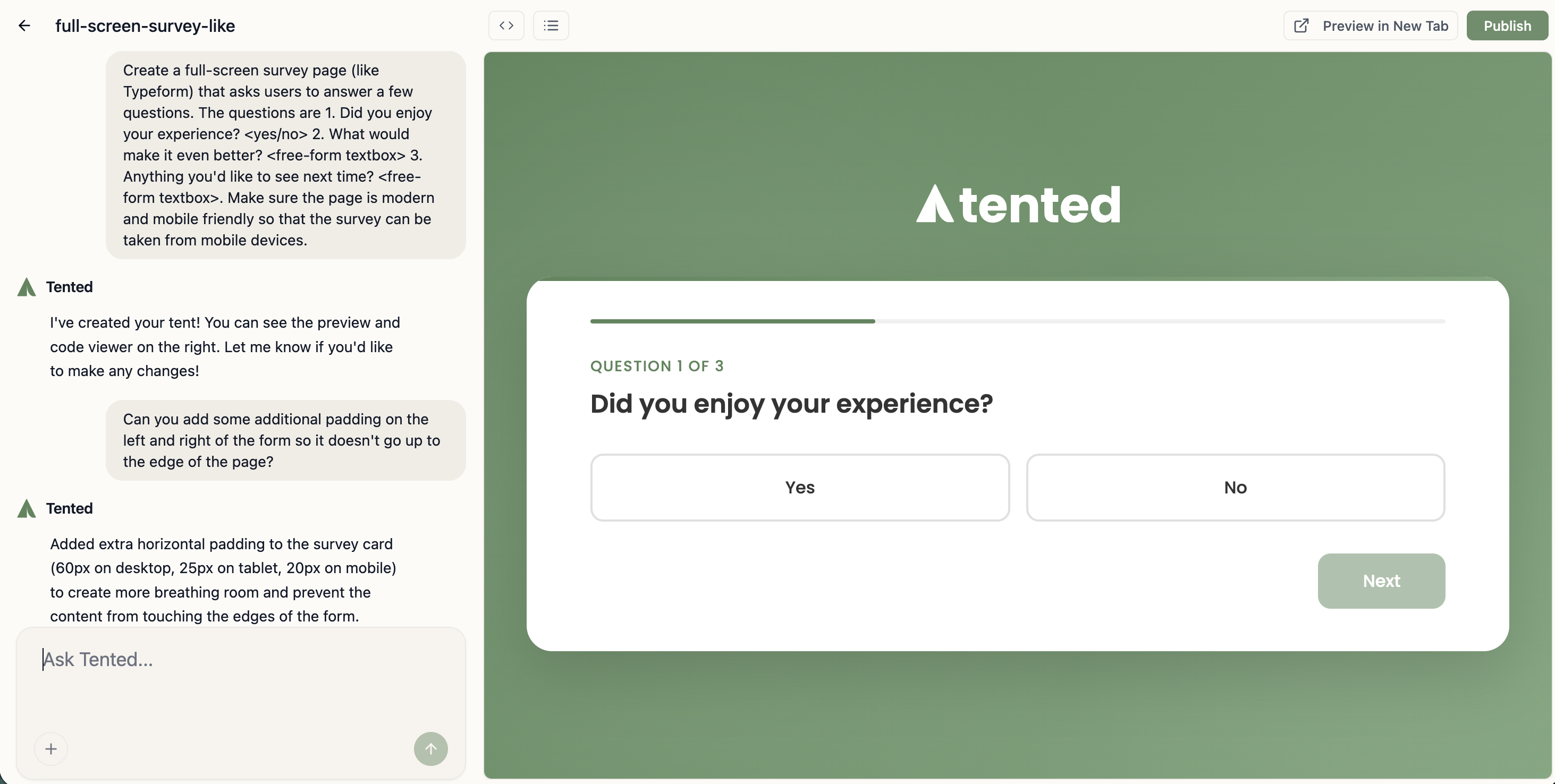 Tented Vibe Coding for Marketing Demo - Tent Editor