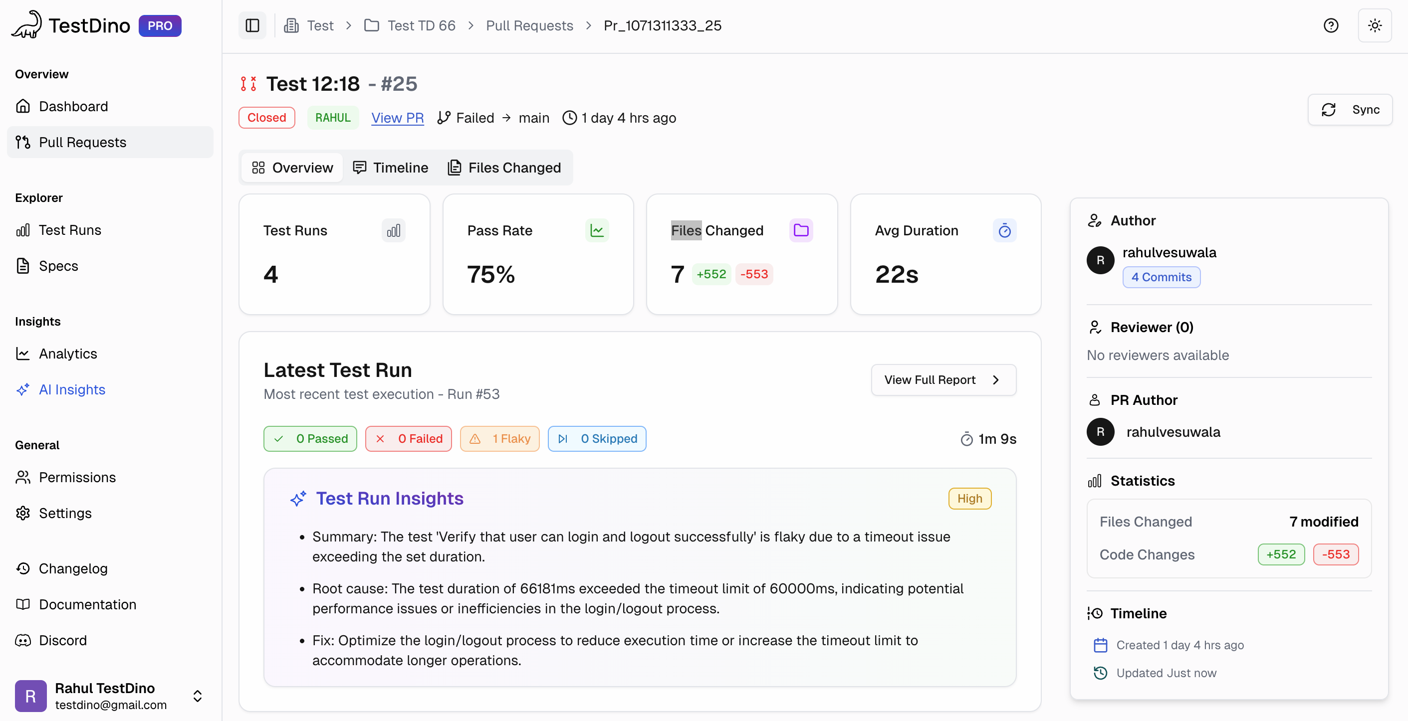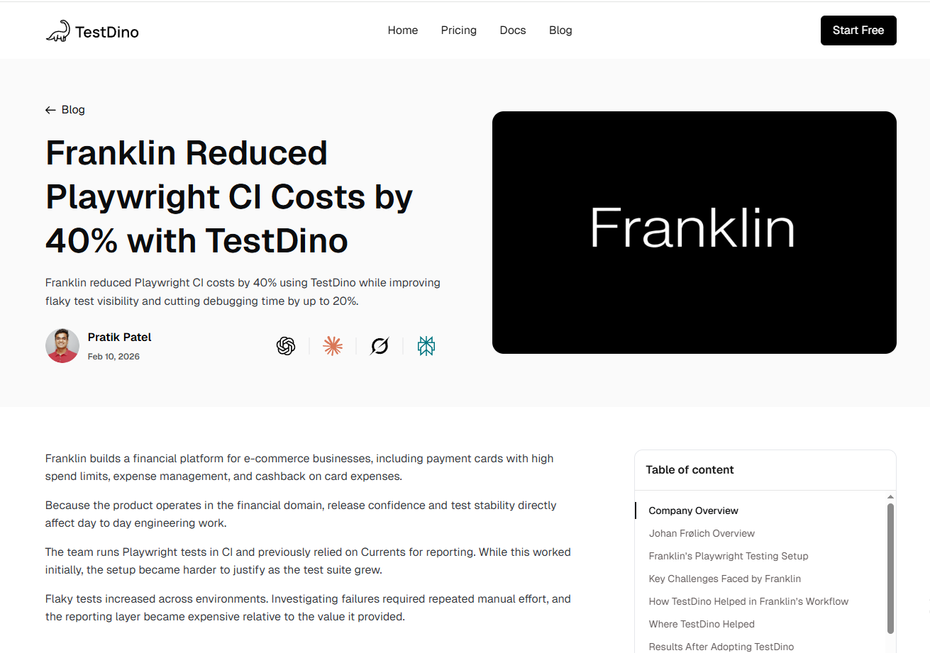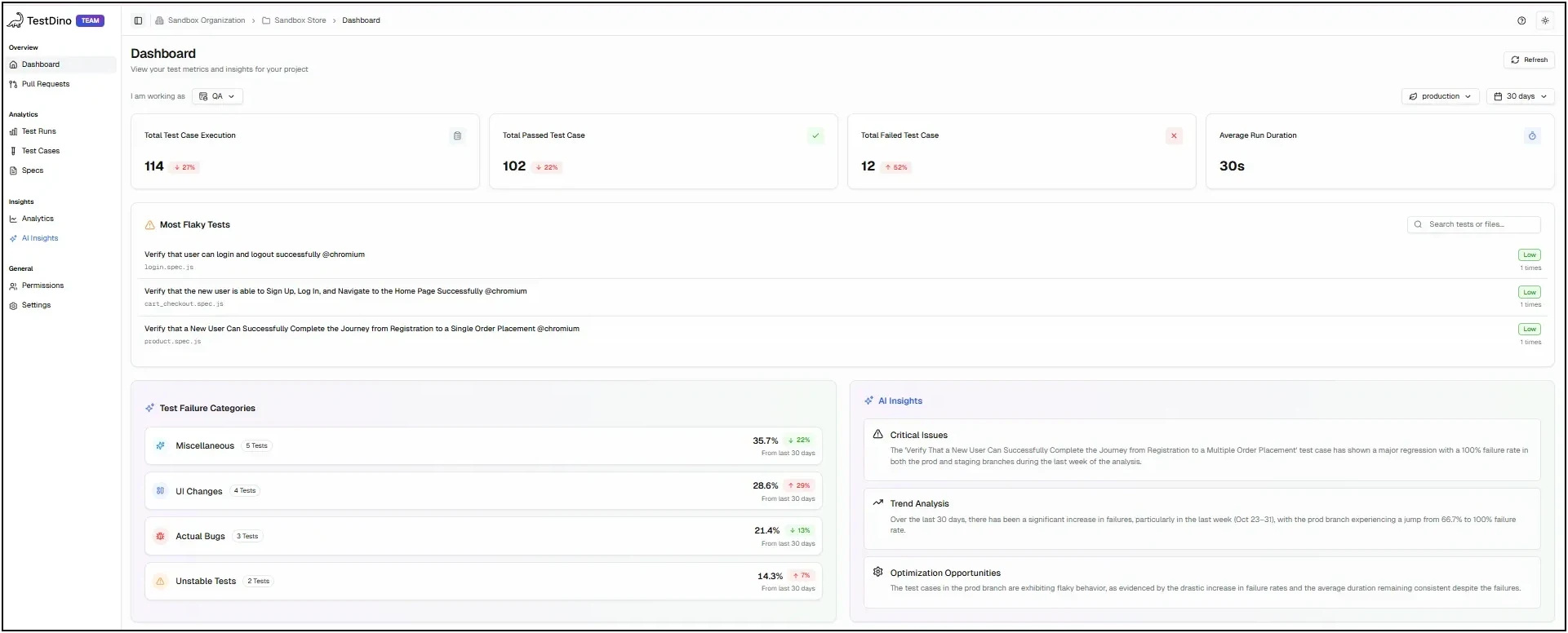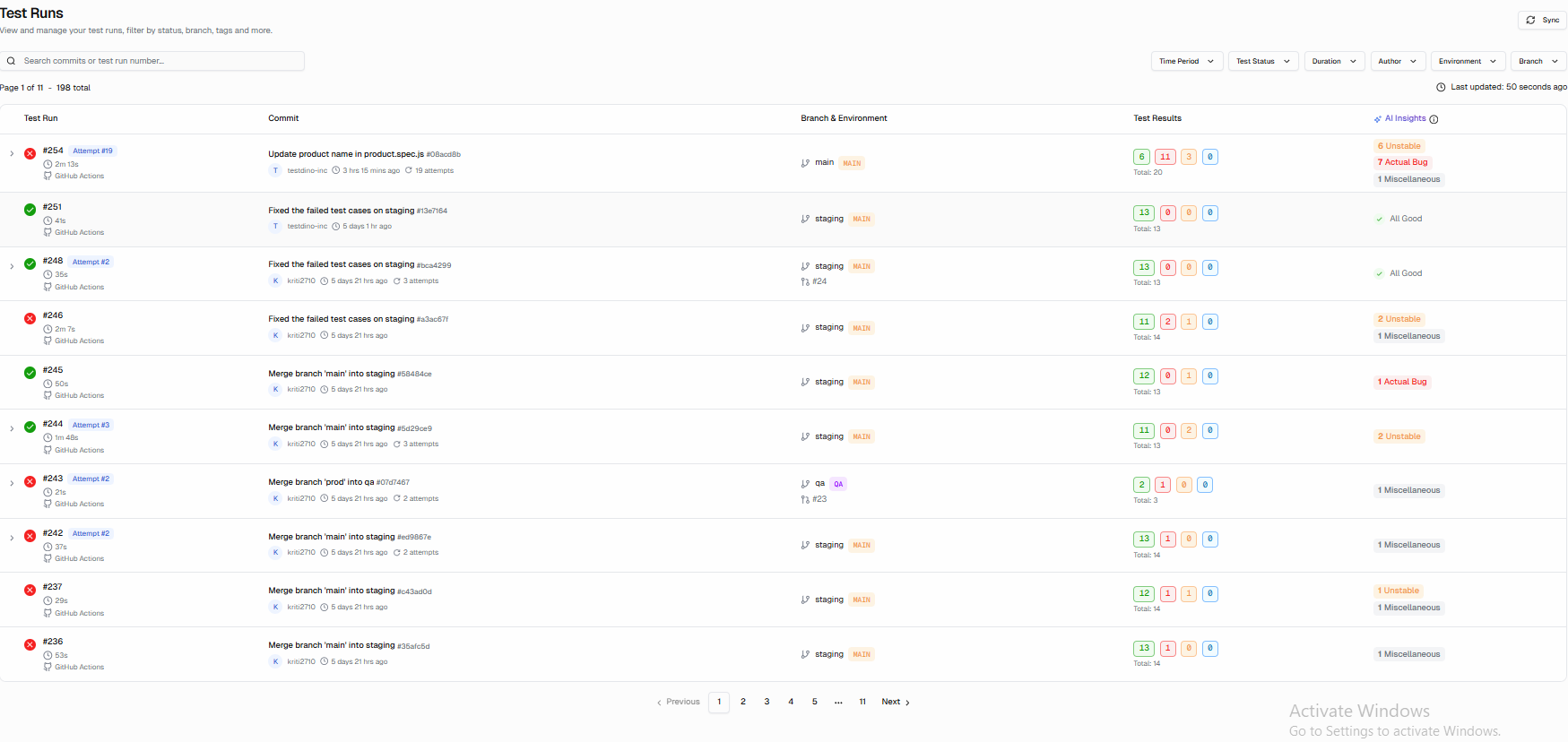 This is a comprehensive dashboard that, as a QA engineer, lets me monitor everything my tests are doing—from the full list of tests to detailed error screenshots. Integration with GitHub is smooth and straightforward, making it simple to access related information like commit hashes, CI runs, and HTML reports directly from the dashboard. Whenever I encountered any issues, Ayush and Pratik were always supportive and quick to respond, providing helpful guidance each time. I use test dino almost every day, and it has significantly contributed to improving the quality of our automation code as well as making code cleanup much easier. Review collected by and hosted on G2.com.