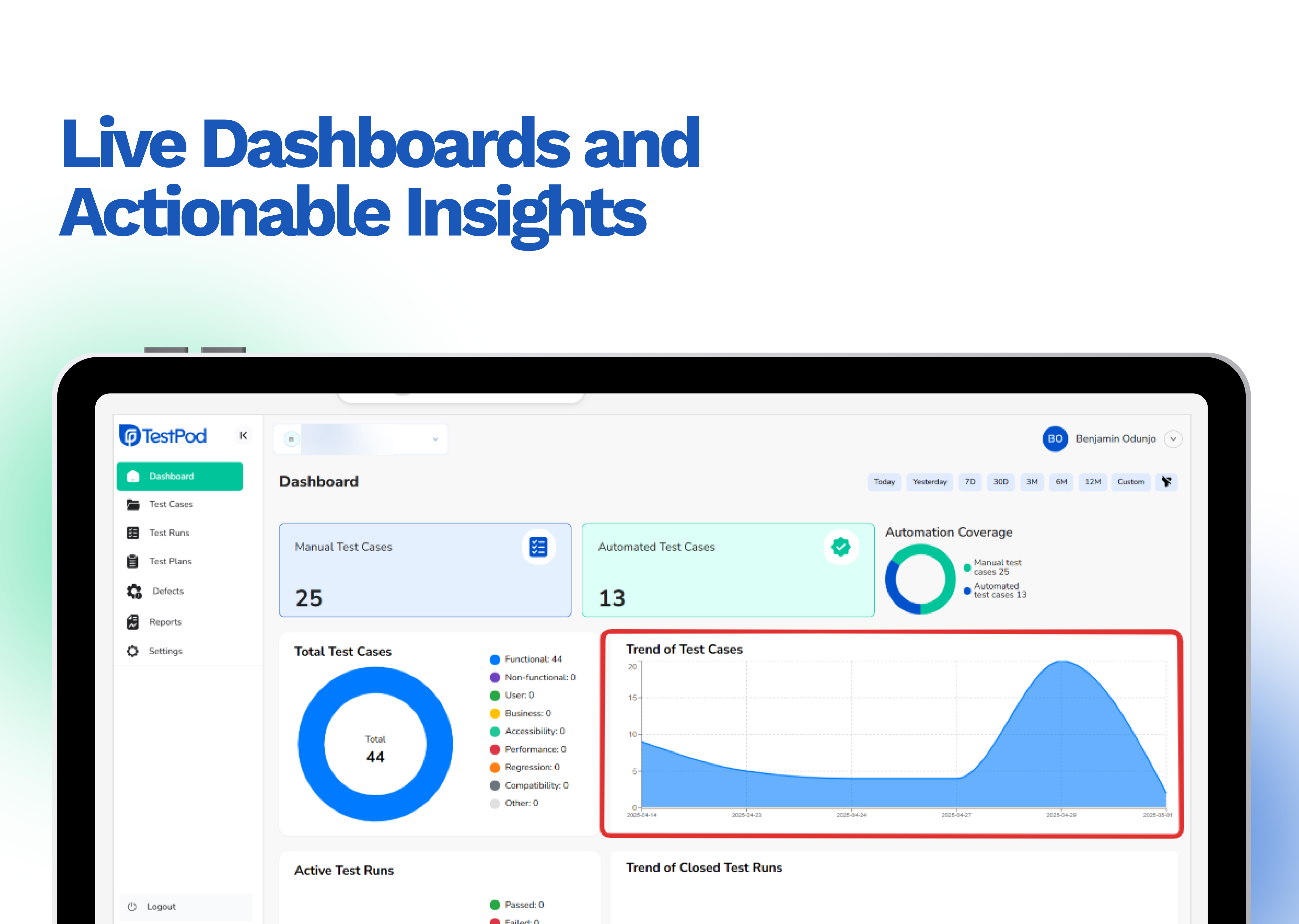 With TestPod, teams can manage, track, and organize test cases with ease. Whether you’re handling manual test executions, integrating automated test results, or collaborating across QA, development, and product teams, TestPod keeps everything in one intuitive, collaborative workspace.