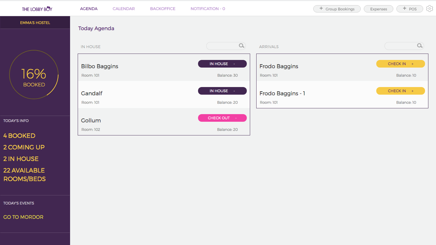 What I like best about the lobby boy software is the room feature that connects to revenue and calendar, where you can track rooms for occupancy, how much they make and who is in each room. Review collected by and hosted on G2.com.