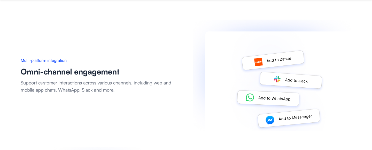 Support customer interactions across various channels, including web and mobile app chats, WhatsApp, Slack and more.