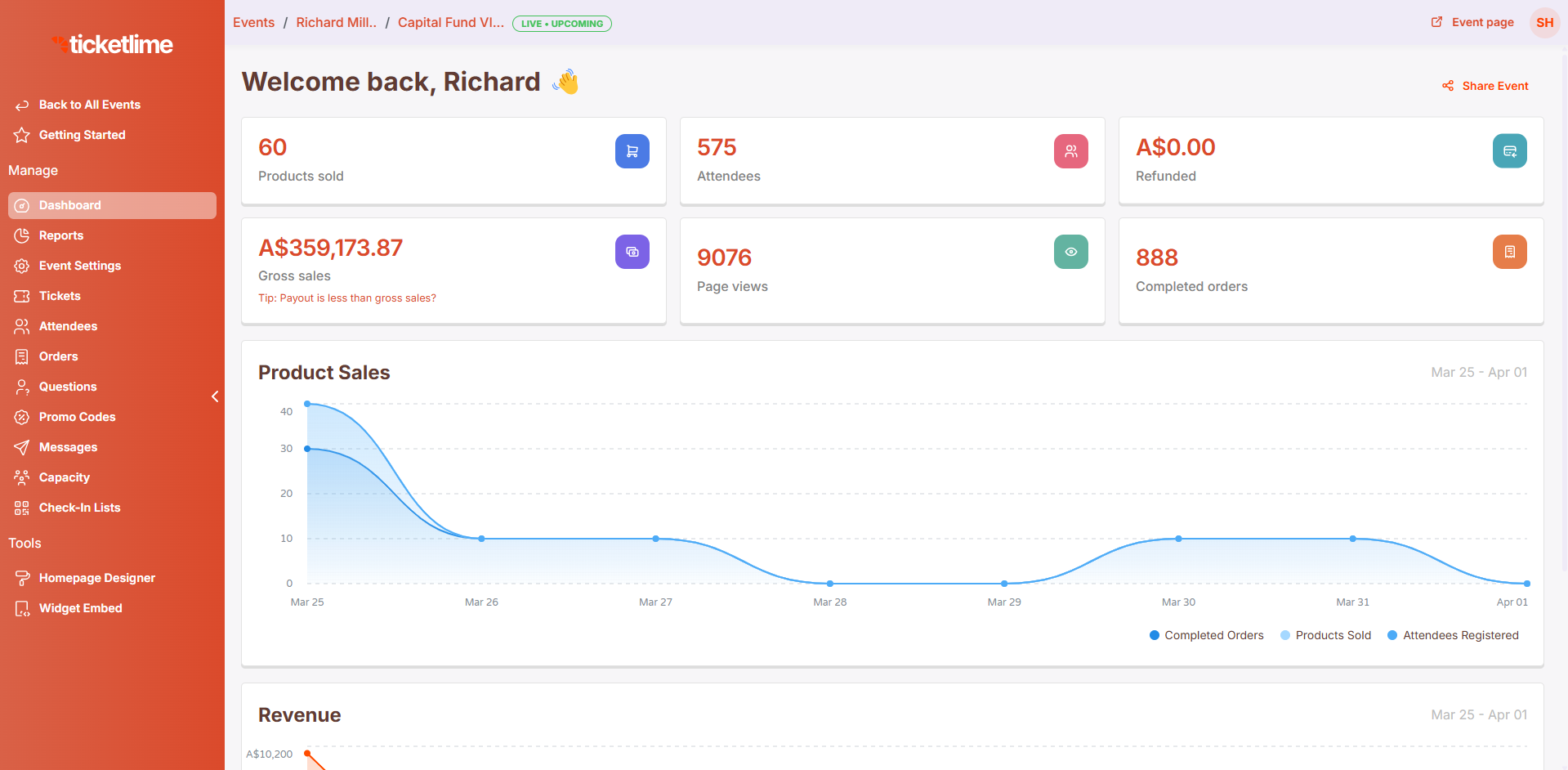 Eventbrite is a website that allows event organizers to plan, set up ticket sales and promote events of any size and publicize them across Facebook, Twitter and other social-networking tools directly from the site's interface