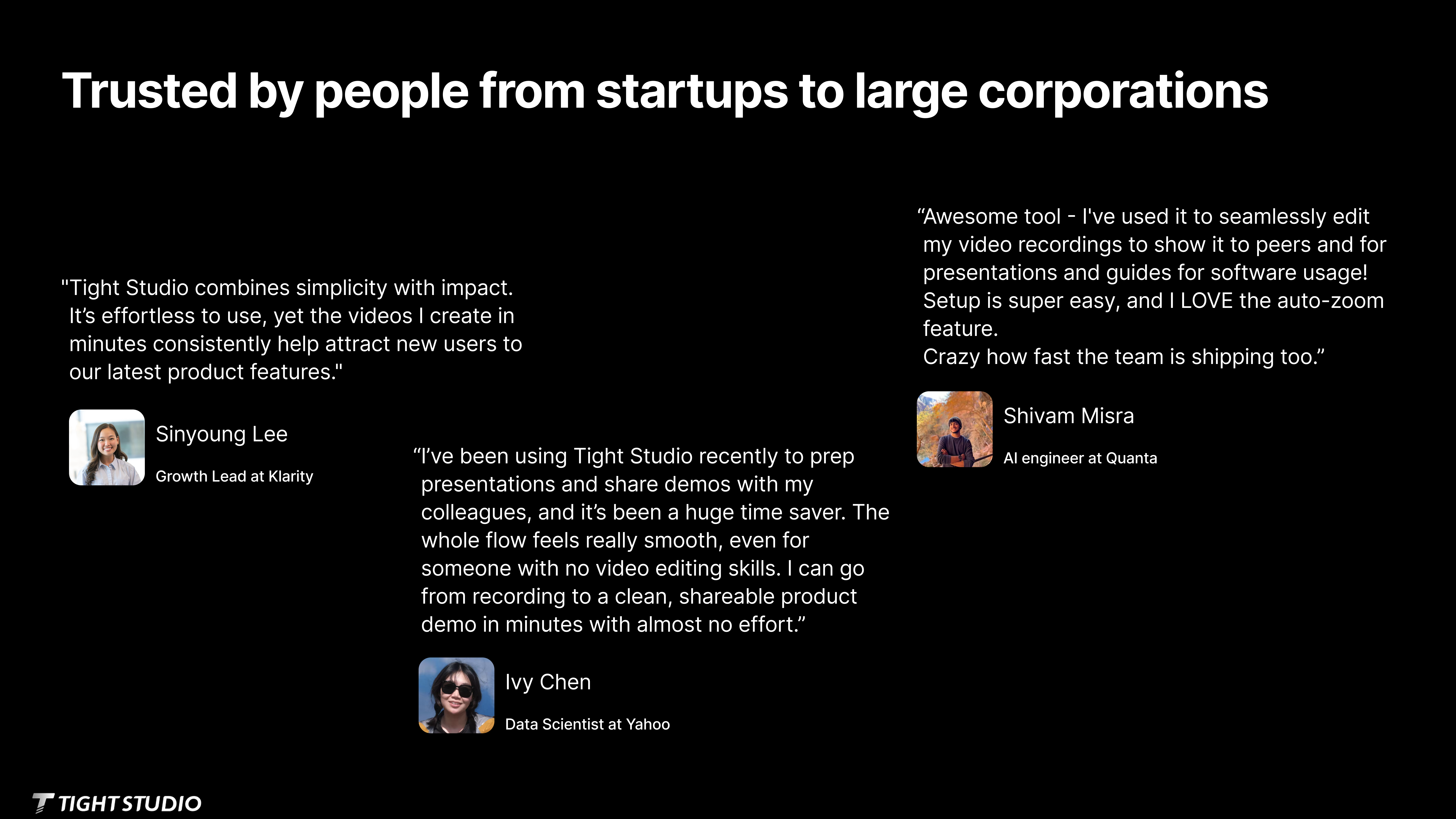 Consensus is leading the world into a new era of demo automation. Our platform gets your buyers what they need when they need it. It then multiplies your revenue team's impact with unique insights on those buyers. As a result, you'll see faster close times, larger deals, and higher close rates. Buying enterprise software is slow, frustrating, and broken. Our patented demo automation platform fixes that. It combines the best of video, product interaction, and discovery automation to deliver an unparalleled experience for buyers and customers alike. From the C suite to the end user, our demos travel virally, adapting to each viewer, revealing hidden stakeholders, and answering key questions. They then feed powerful data on intent and needs back to your team with every click, multiplying their impact. Best of all, you create these experiences in minutes rather than months. G2 rates us #1 in demo automation, the only enterprise-hardened solution, and 15 of the top 30 software companies in the world trust us to deliver great experiences and higher win and renewal rates.
