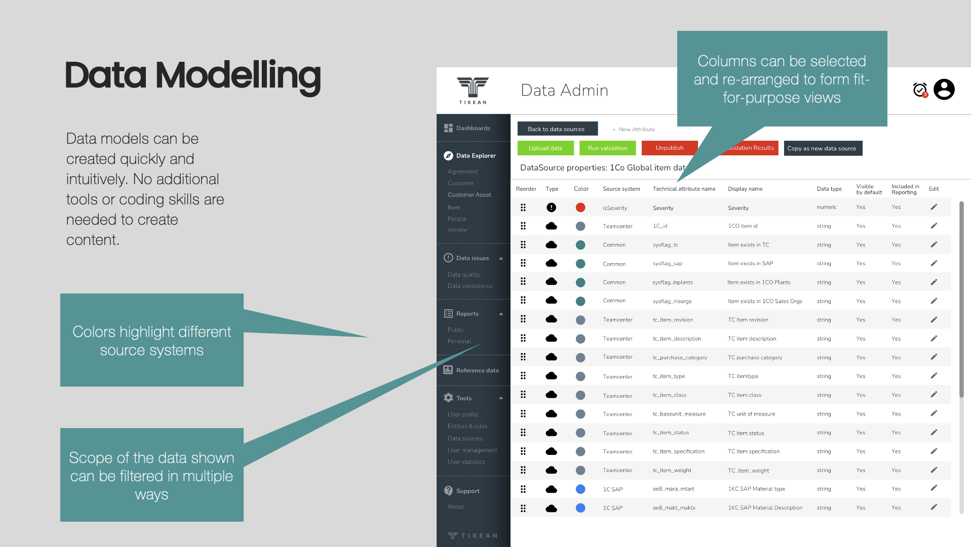 Dynamic data modelling makes it easy to provision any data domain and source to TikeanDQ. Rich feature set supports merging data from multiple origins and legacy systems into domain views.