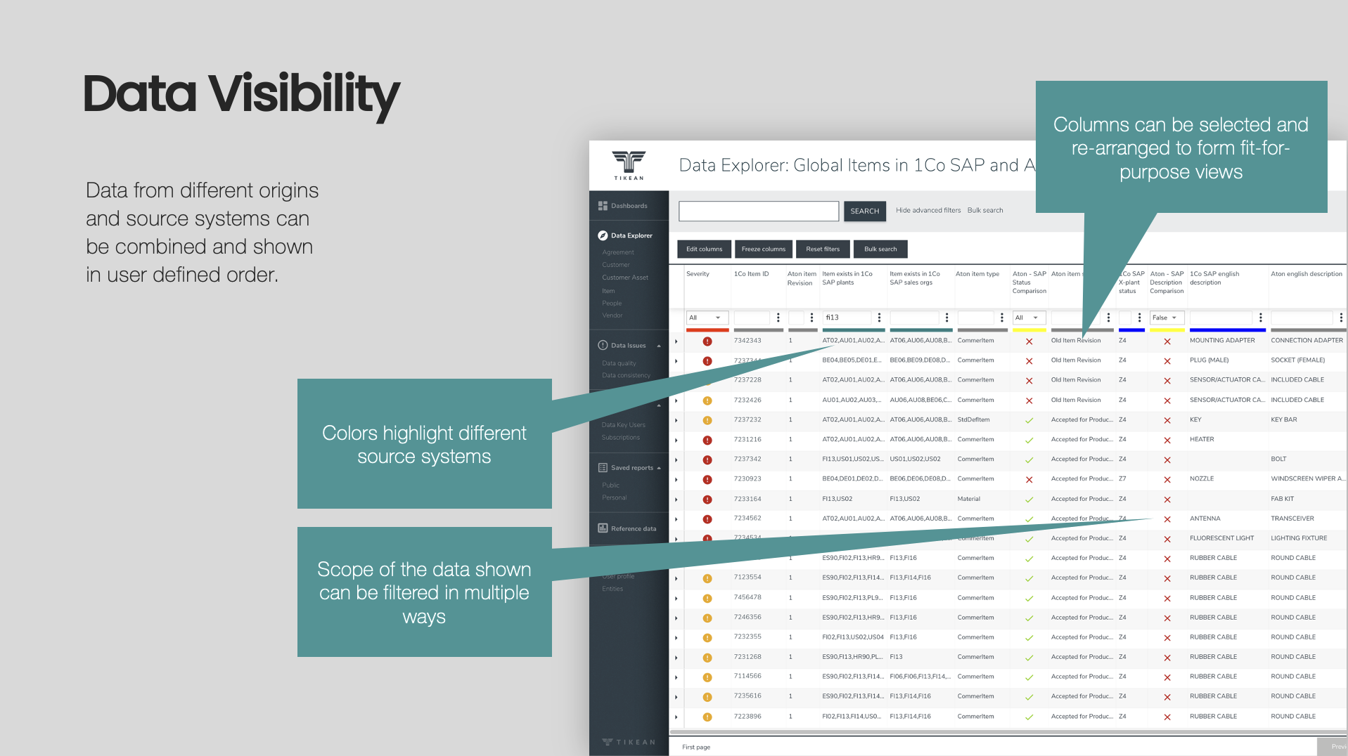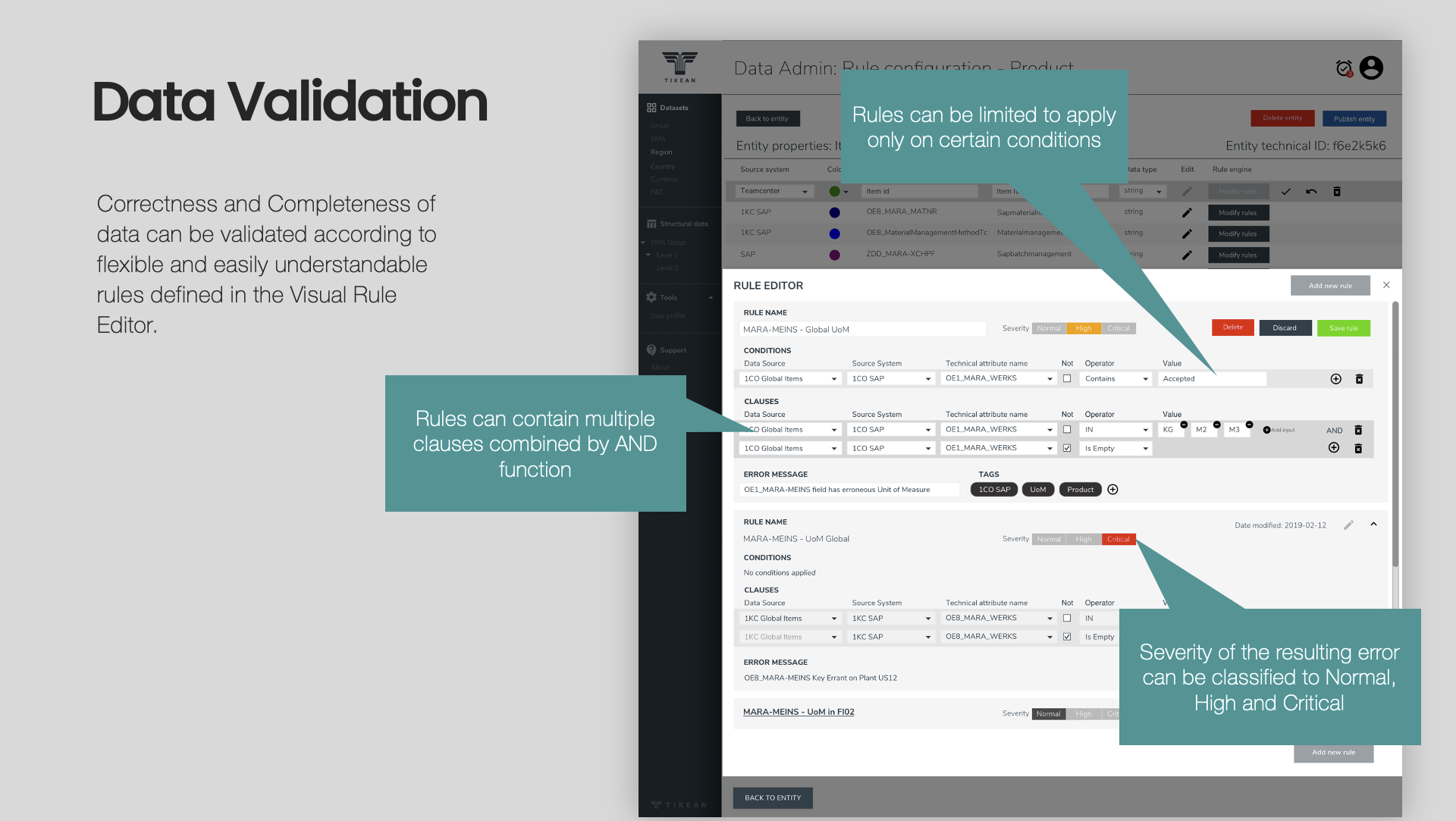 For example, TikeanDB plugs into SAP organization structures by default and easily provides quality control over global and local data elements (a must-have e.g., for the manufacturing industry to speed up, and ensure the supply process flows!)