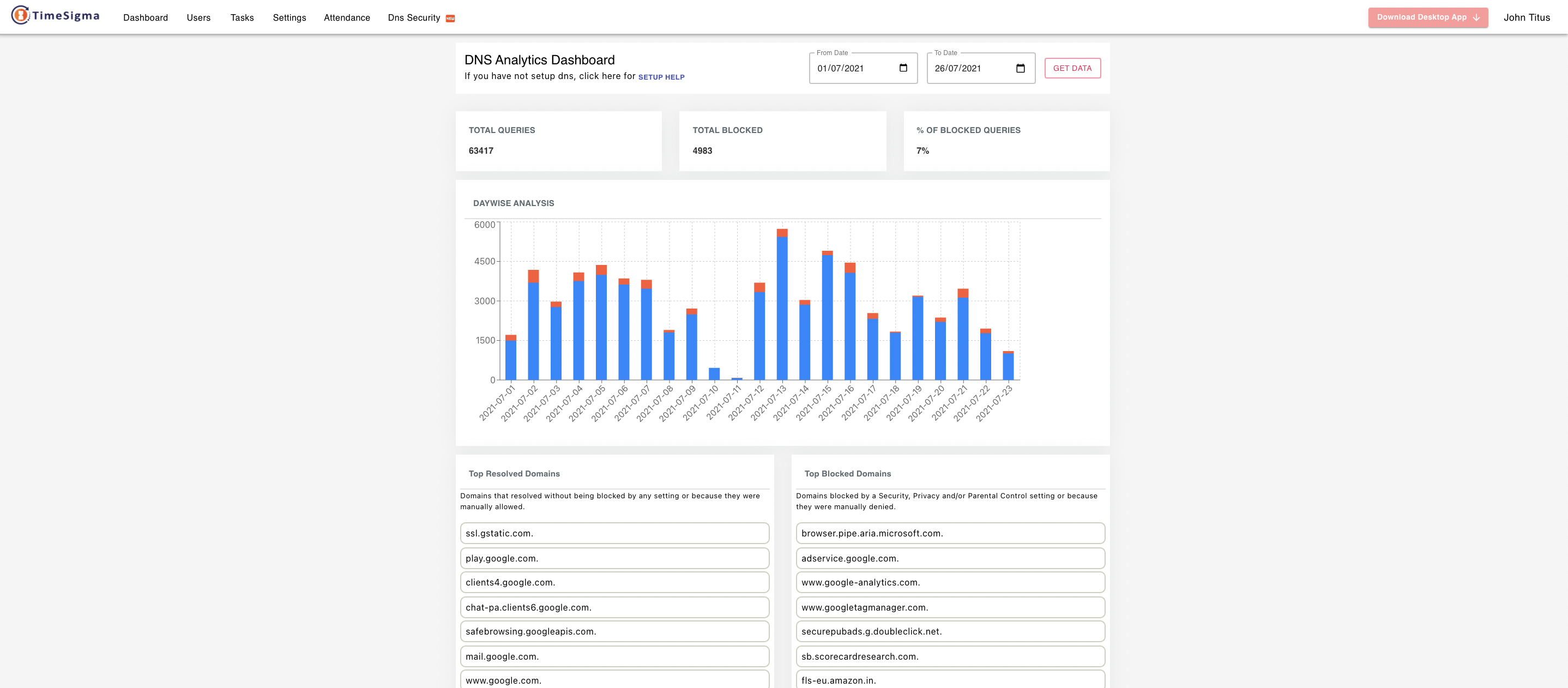 View DNS Analytics like Overall Queries and Blocked Queries. List of Top Resolved Domains and Top Blocked Domains.