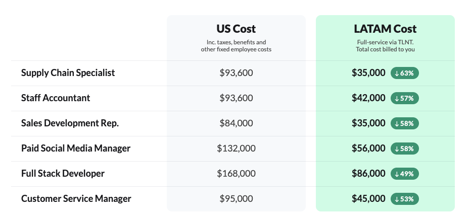 TLNT clients save an average of $63,500 per hire, per year versus an equally skilled US hire.