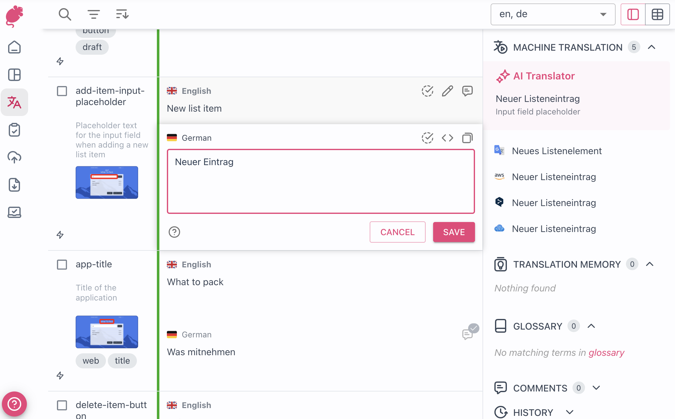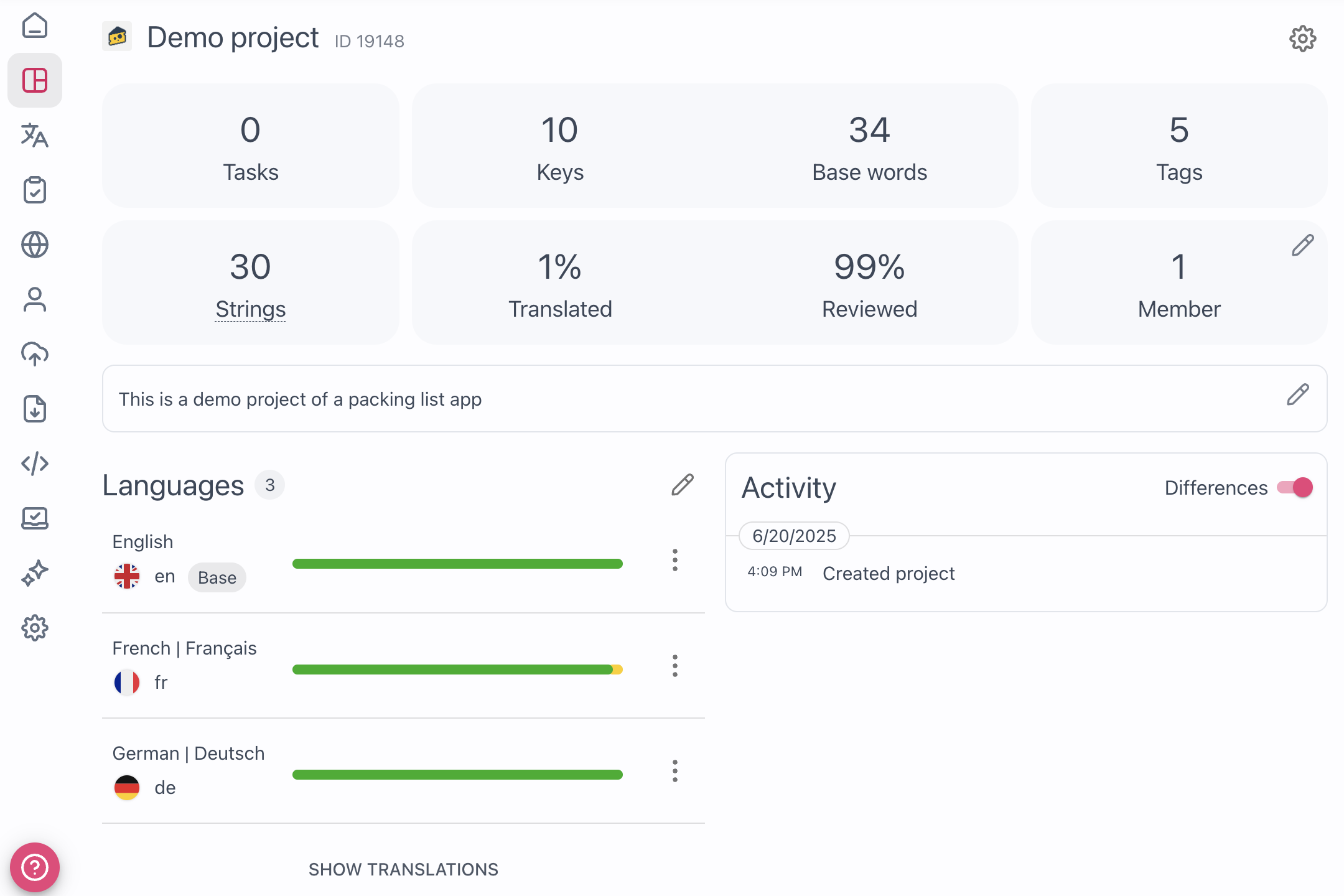 It provided us with Great Translation Experience for our multiple Apps, Environments and Languages. Very easy to use and implement and we can integrate it with different versions and apps, including the web and mobile apps. We use it everyday to track the strings and translation texts. Review collected by and hosted on G2.com.