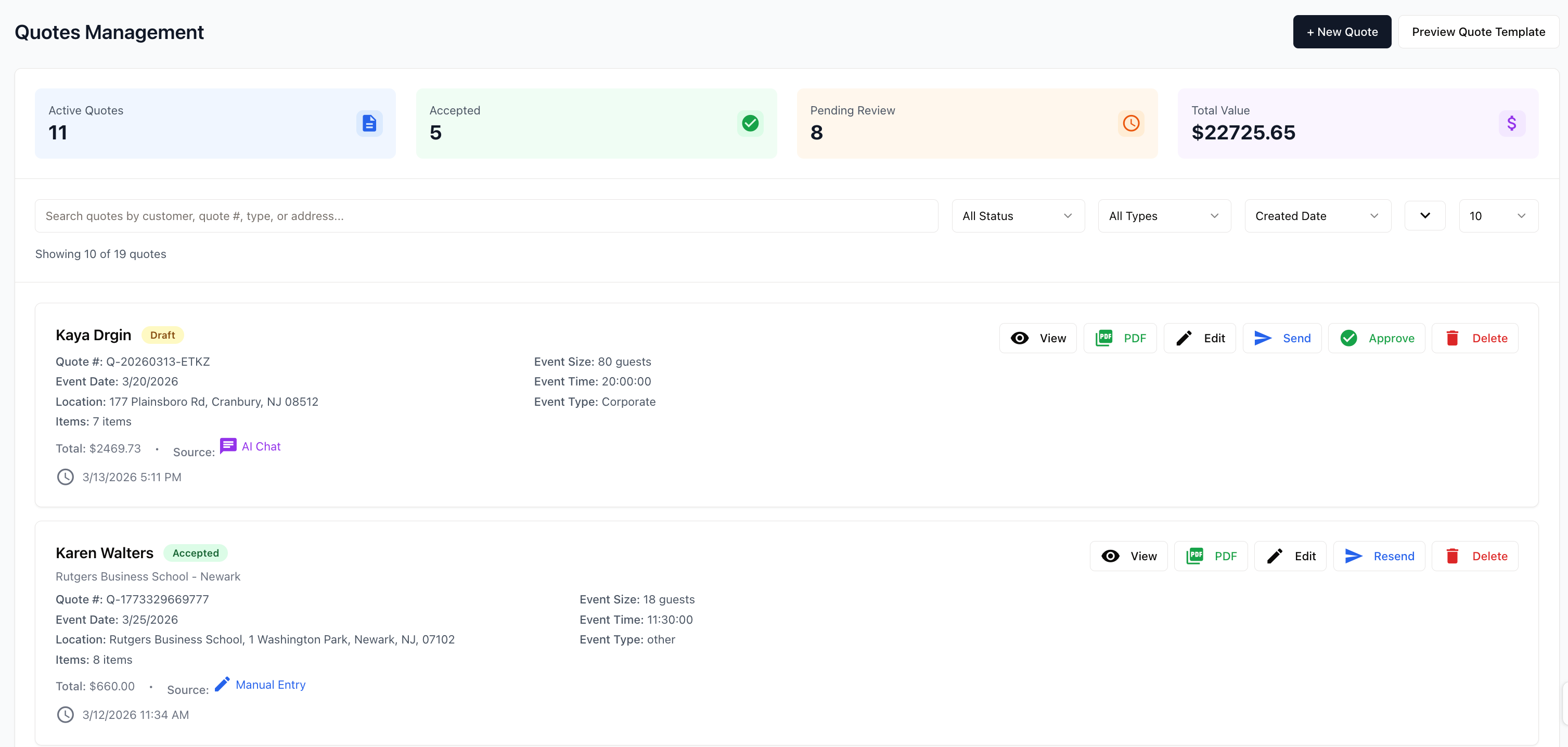 Catering + Event Management Solution