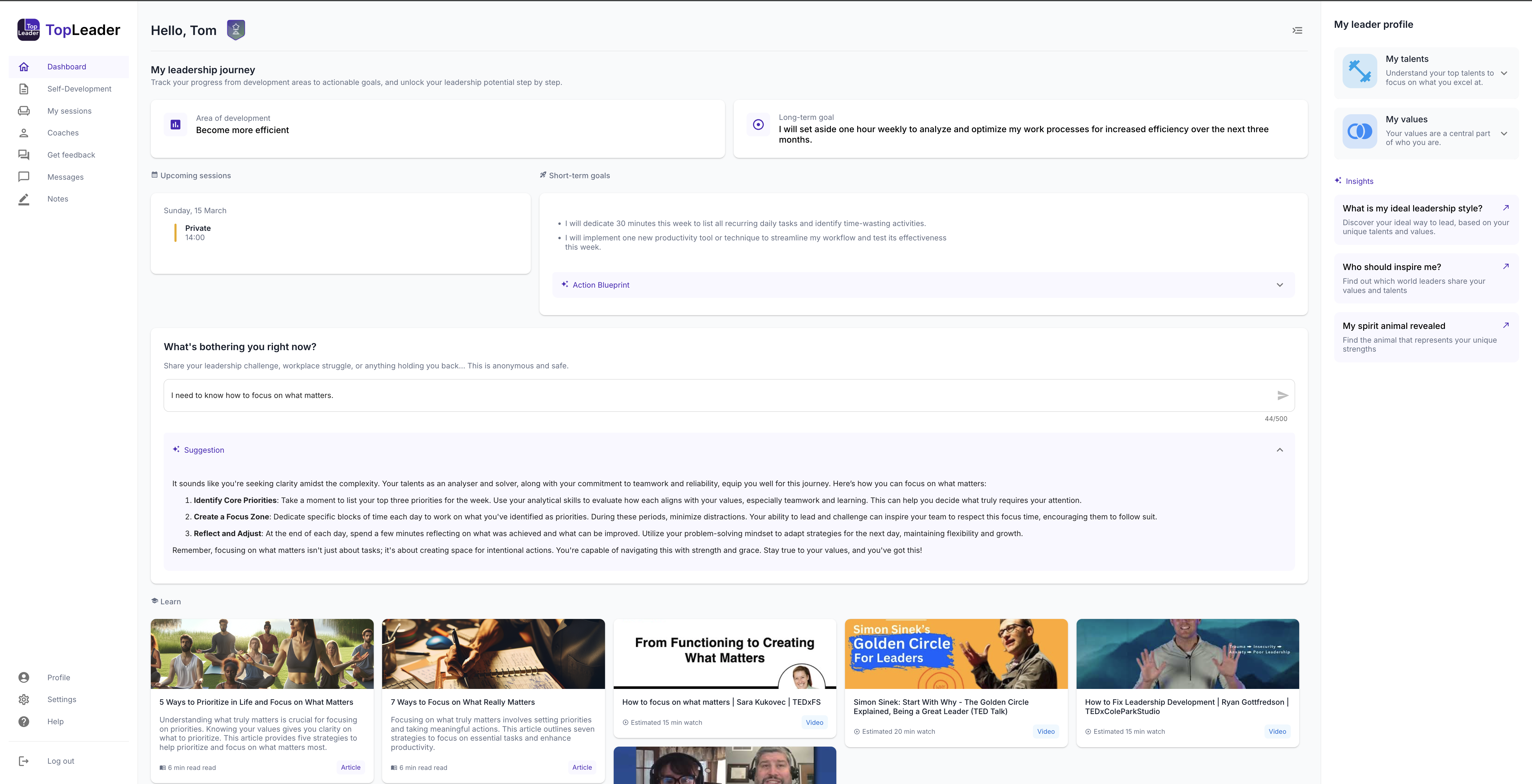 I’ve come across plenty of digital coaching tools, but Top Leader genuinely stands out for putting the user journey first while still maintaining real technical depth. It creates a space where both coaches and leaders can stay focused on what matters most: transformation. Review collected by and hosted on G2.com.