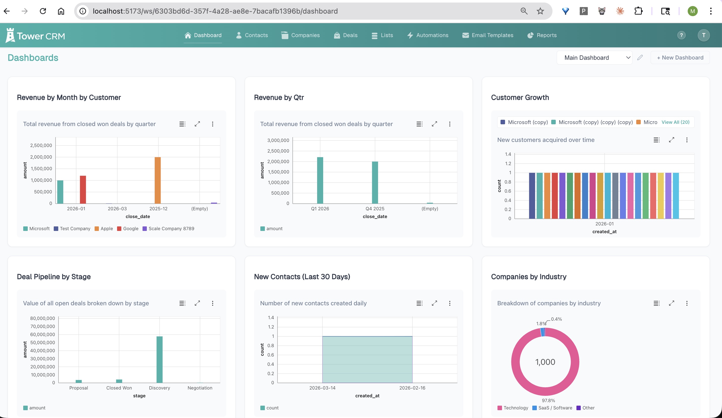 Tower CRM is a modern customer relationship management (CRM) platform designed for growing teams that need powerful sales and marketing capabilities without the complexity of traditional systems. It brings contacts, companies, deals, activities, marketing tools, and reporting into one fast, intuitive workspace built for how teams actually work day to day.