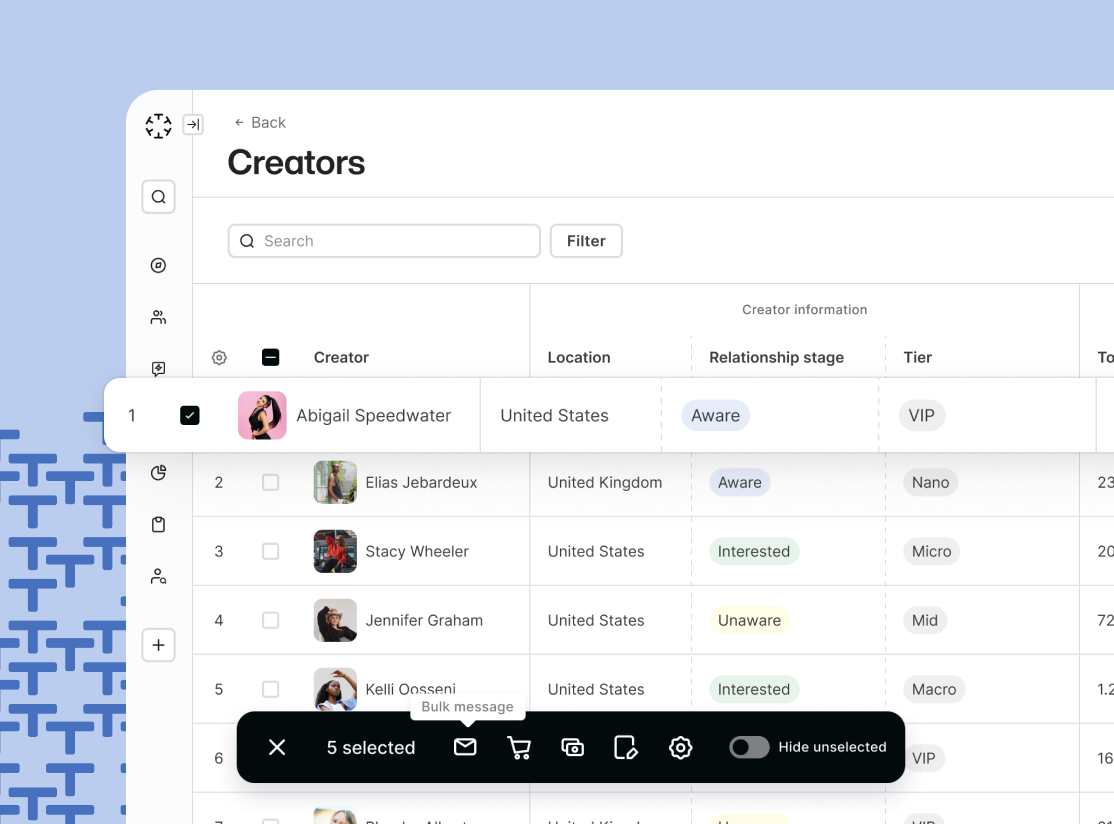 Traackr works with global social networks like TikTok, Instagram, YouTube, among others and we acquire useful insights for business development