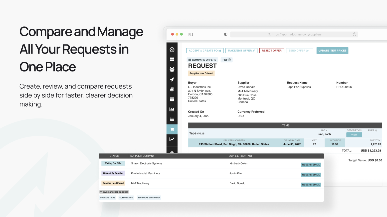 I don't like how I have to get an independent quote and then input it into TRADOGRAM to create a purchase order. It would be better if I could contact the vendor directly through TRADOGRAM and have the quote automatically encoded. Review collected by and hosted on G2.com.