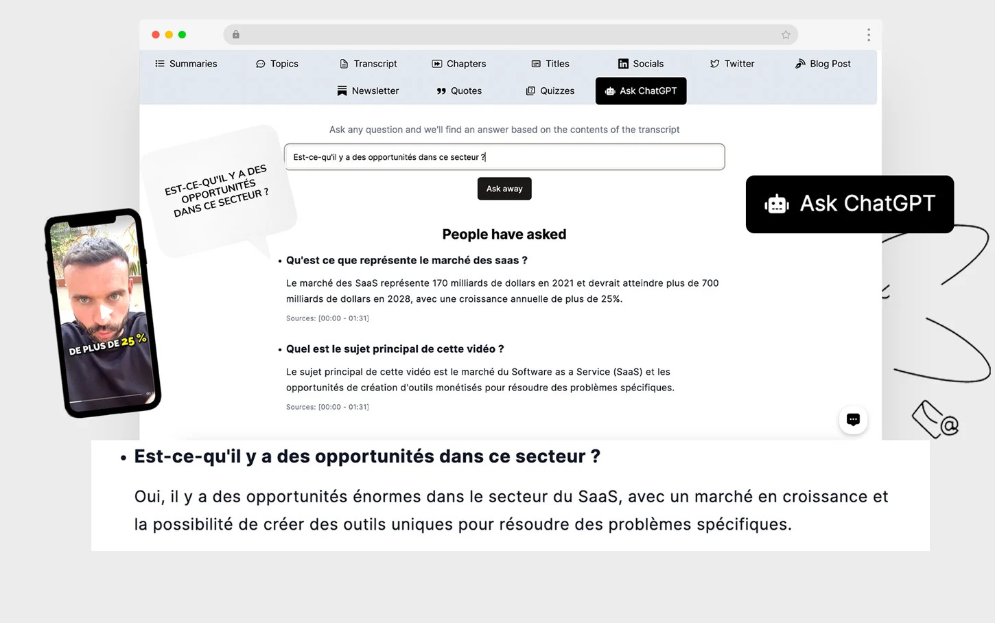 Ask any question and get answers based entirely on your audio or video content