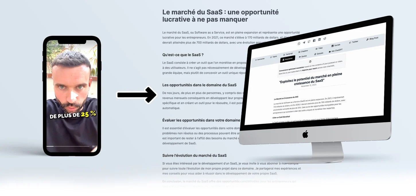 Repurpose your audio, video content into blogposts, newsletters and other long form content for boosted SEO visibility