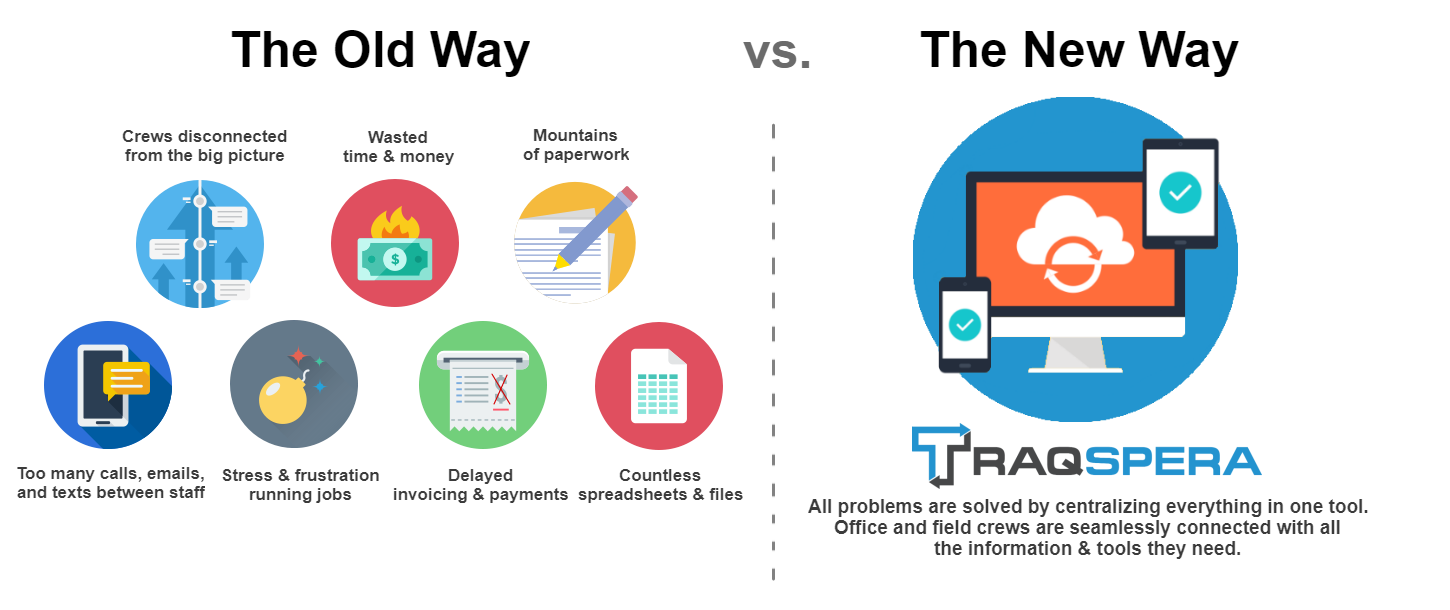 Streamline communications and collaborate through Traqspera. Quit wasting your time trying to run your business while buried in paper, emails and spreadsheets. How can you drive profits if you’re stuck pushing paper?