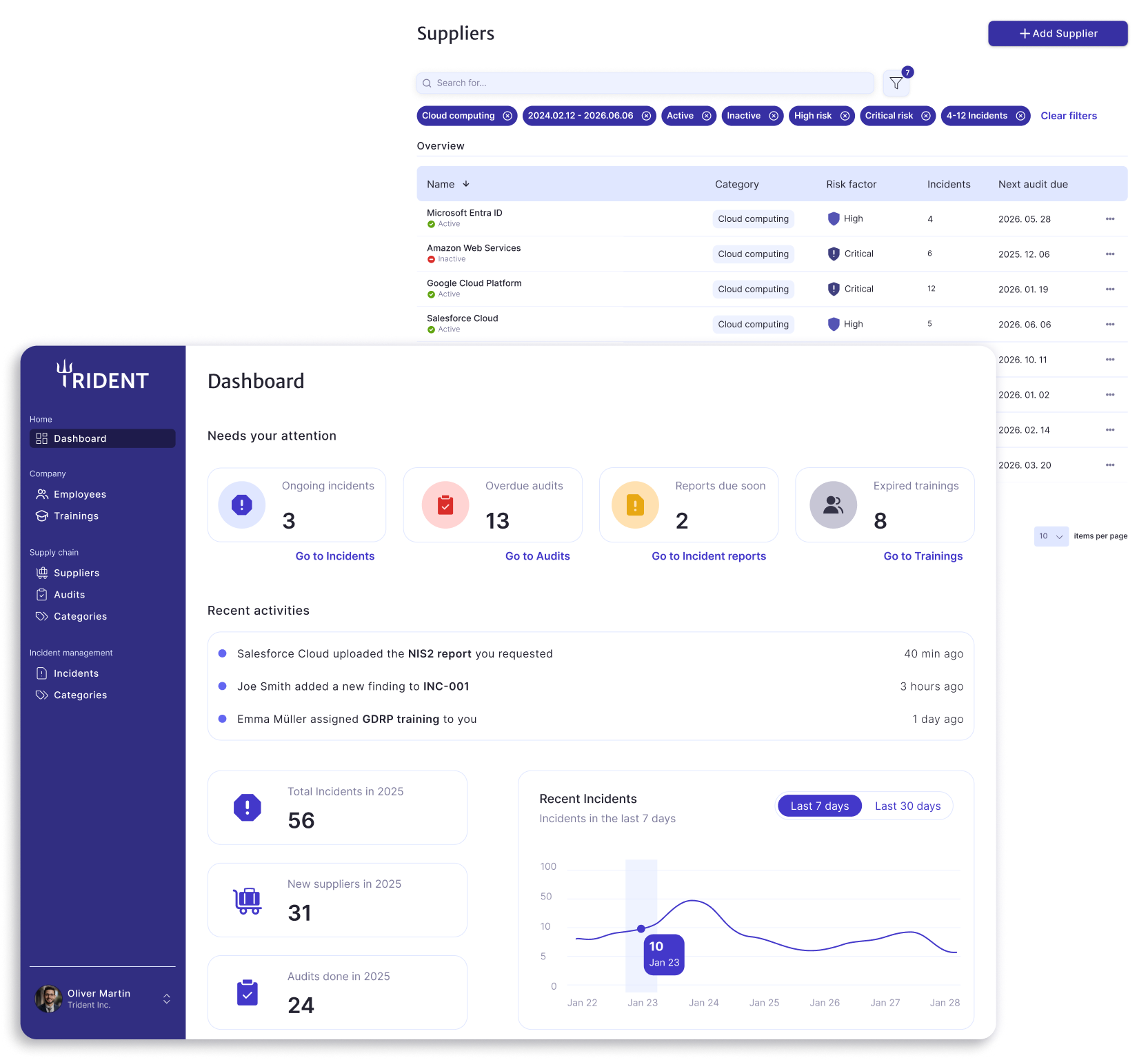 Trident NIS2 provides a clear, structured approach to meeting compliance requirements and simplifies the process of managing cybersecurity obligations. The platform is easy to navigate, offers practical guidance, and streamlines implementation steps, making it easier for teams to adopt. Its features help reduce complexity, improve operational awareness, and support ongoing compliance with minimal friction. Review collected by and hosted on G2.com.