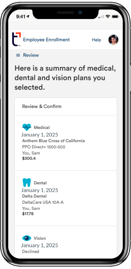 Benefits enrollment via mobile app.