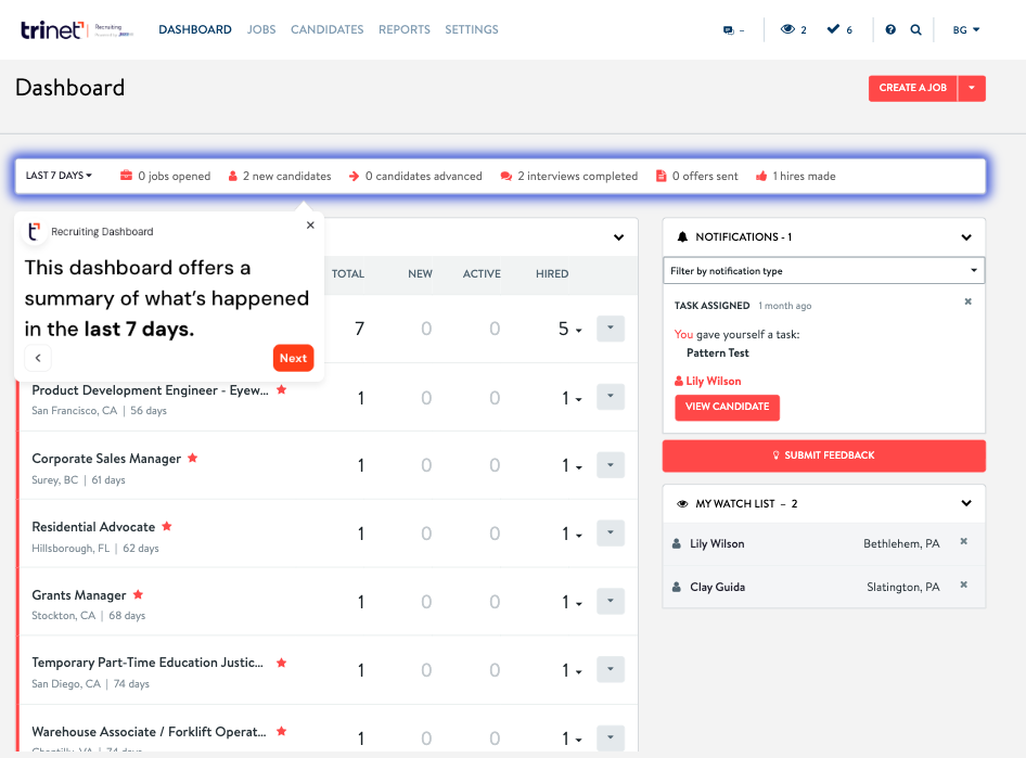 Main recruiting dashboard for HR Plus.