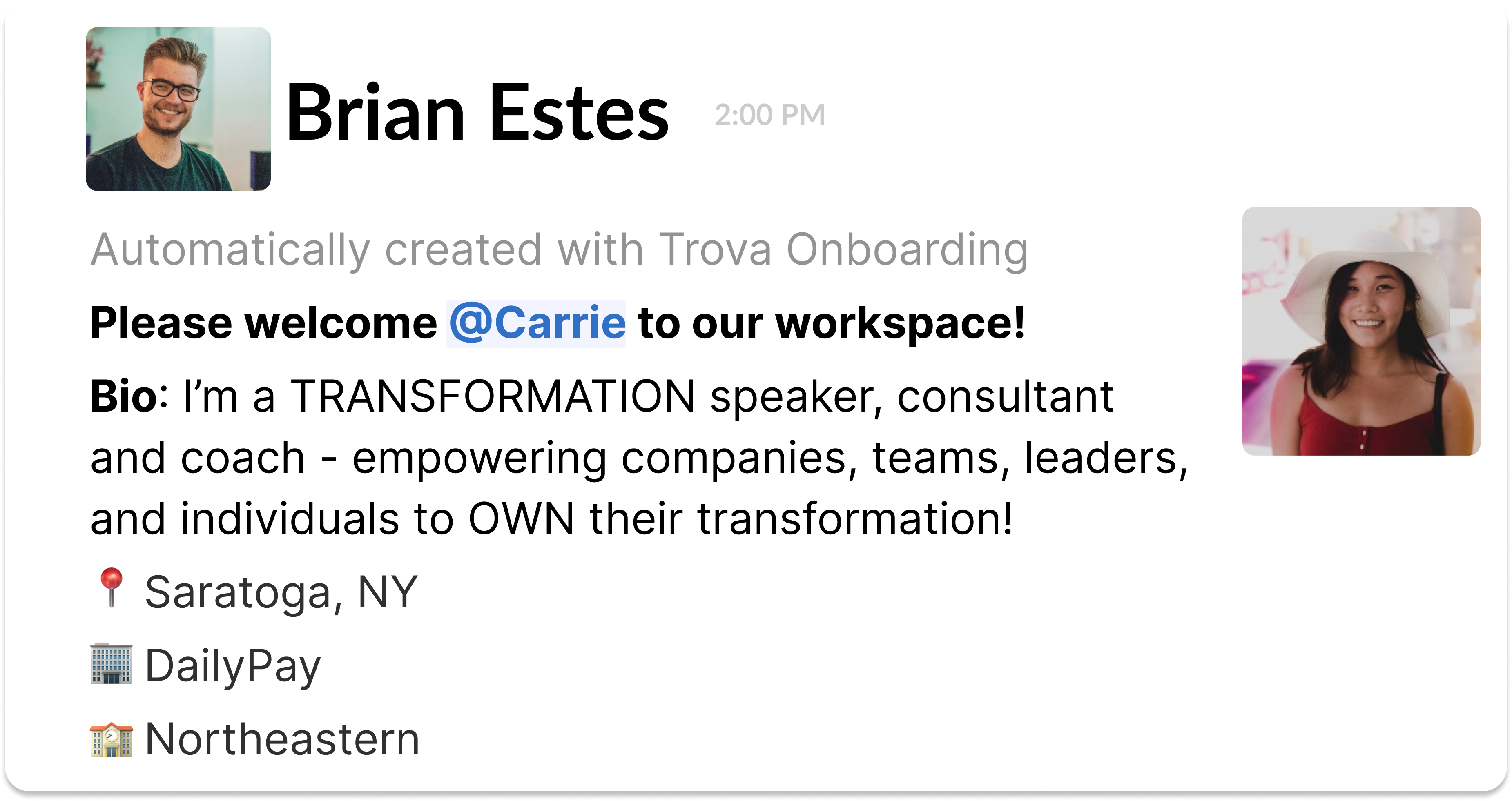 Trova has been a total game changer for our organization. As a global, remote first workforce it's hard to have water cooler moments and get to know colleagues on a personal level, and to know their working preferences. With Trova we have a repository for people to share fun information about themselves, as well as working preferences so that others can work most effectively with one another. I know I use Trova nearly daily to look up colleagues and personalize communications with them in mind. I also just love working with the Trova team - they are always open to suggestions for new features, and then actually implement the ideas. I can't imagine working remotely without Trova. Review collected by and hosted on G2.com.
