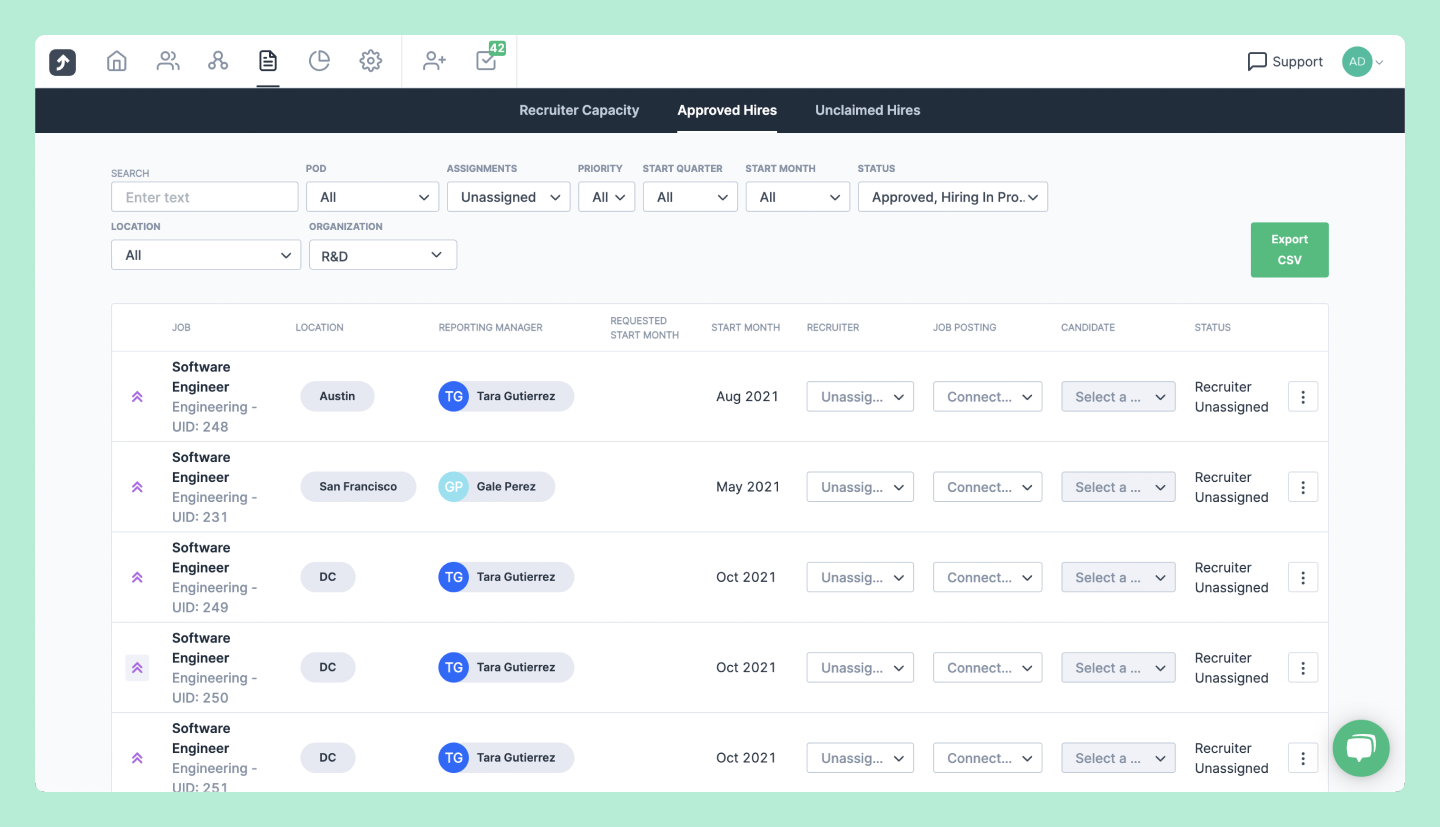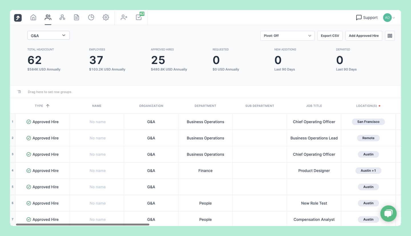 The ability to align and manage current headcount, approved hires and recruiting activity in an actual tool and in a cohesive manner (vs. having 25 different spreadsheets floating around the company). Most people don't realize that even mature companies (such as an Uber) do not have a simple way to track current headcount against approved headcount and compare against actual recruiting progress. Often times these companies have 20-30 spreadsheets floating around every part of the company, none of which actually tie to each other or the actual plan approved by Finance. This tool is a magic bullet that will be a staple in the tech industry in the near future. Review collected by and hosted on G2.com.