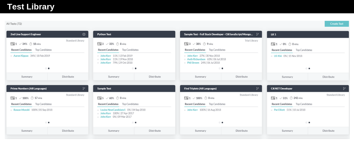 Equip is built for recruiters to conduct pre-hiring assessments. Our assessments test multiple skills at different competencies. Using our vast Question Libraries, or creating Custom Tests enables teams to hire developers, designers, sales representatives and more! We ensure that you spend the least time interviewing only the top prospects.