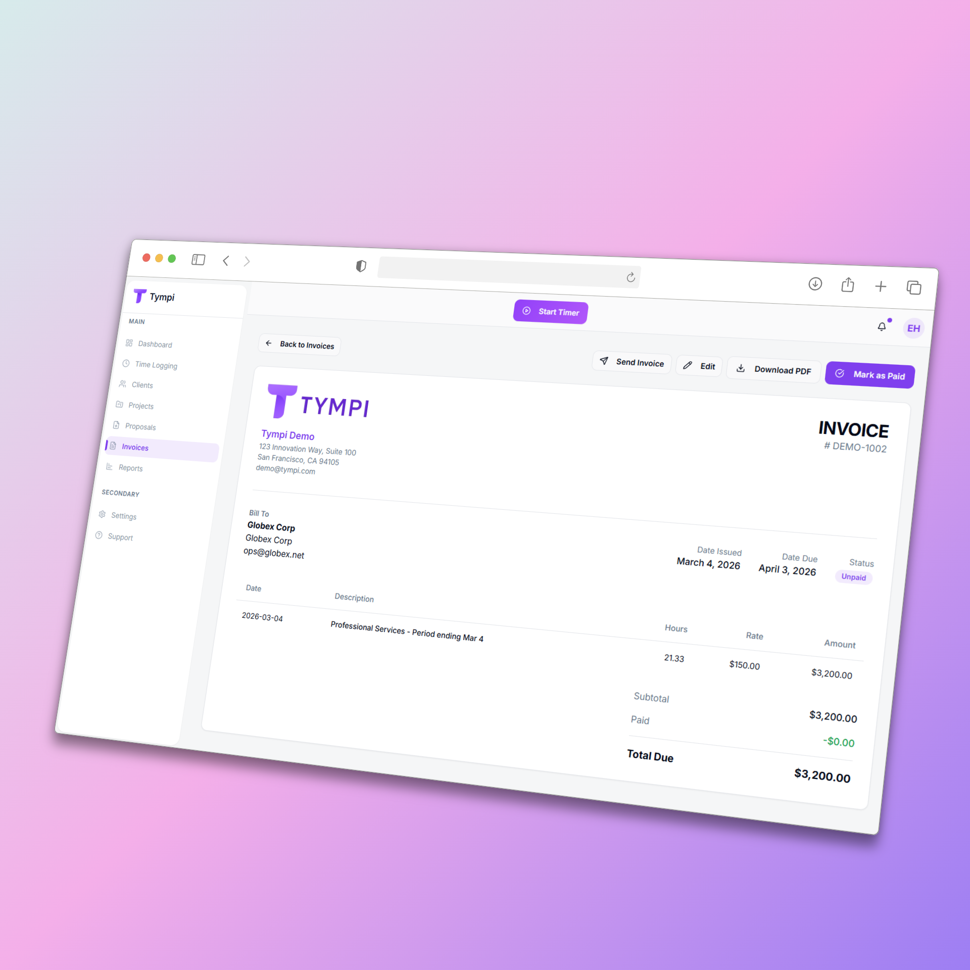 Finally, a way to handle my Upwork clients like a professional agency.Moving clients off Upwork or managing long-term contracts can be nerve-wracking, but Tympi makes me look like a high-end agency. I love that I can send invoice links with my own branding instead of just a generic PDF. Review collected by and hosted on G2.com.