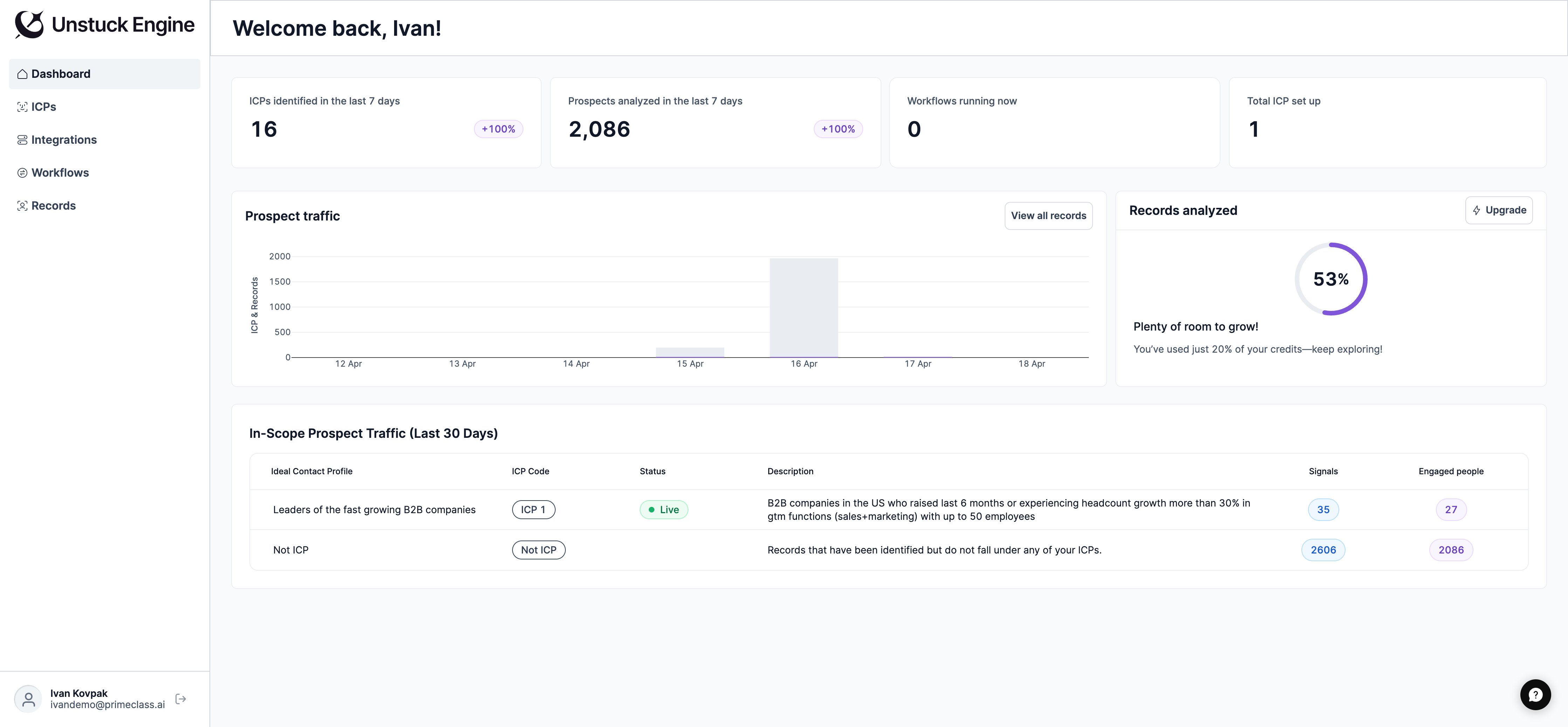 The setup process was incredibly quick—I connected my Sales Nav account, and within about two minutes, it had scored my entire list. The scoring system is logical; it goes beyond simply noting that a company has 50-200 employees. It actually checks if the right contact is present and whether they're showing any signs of intent. This really helps me avoid spending time on prospects that are unlikely to go anywhere. Review collected by and hosted on G2.com.