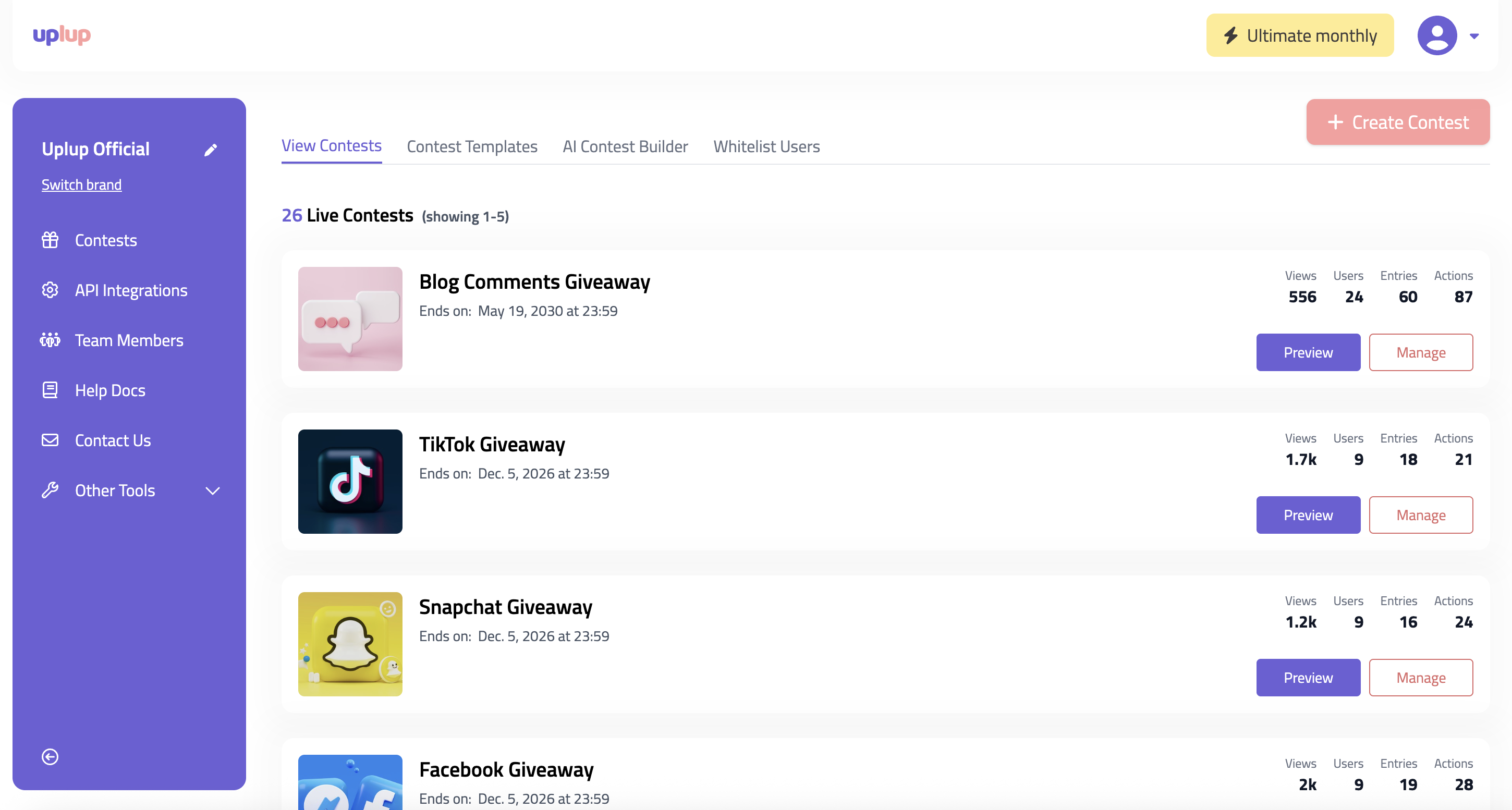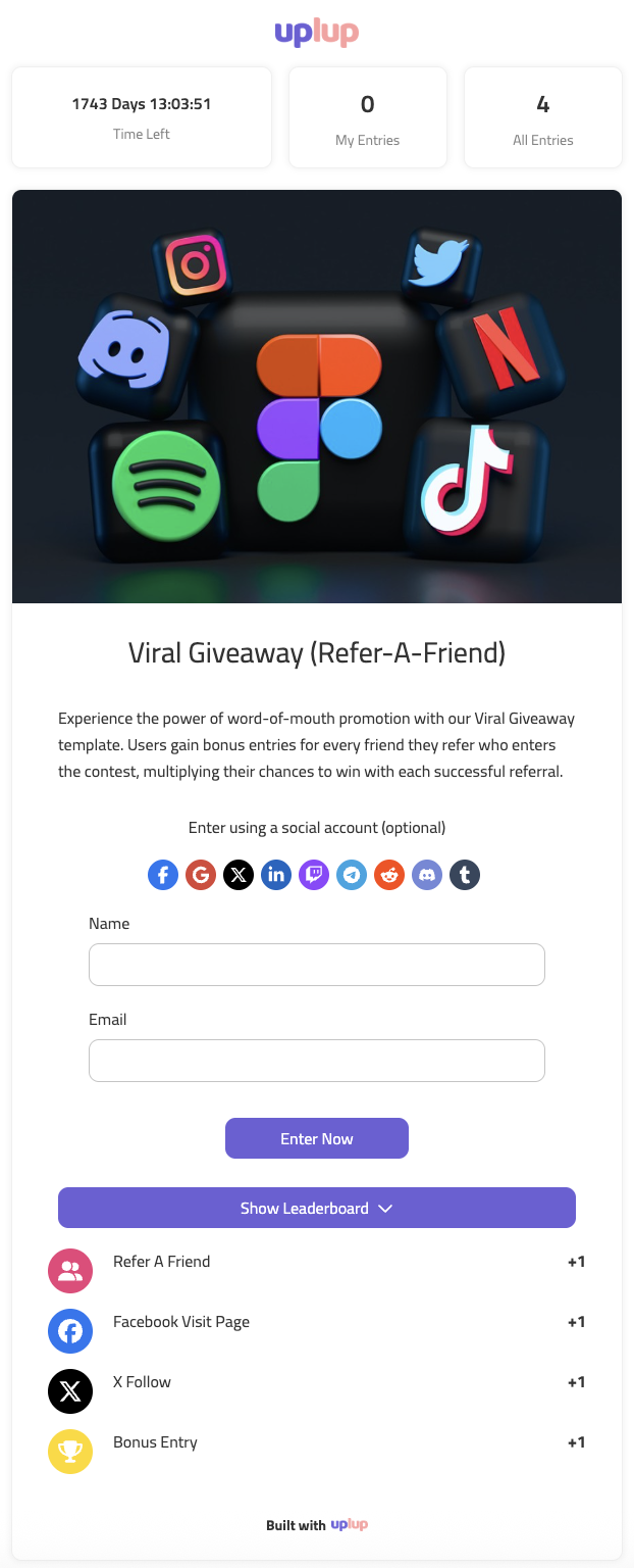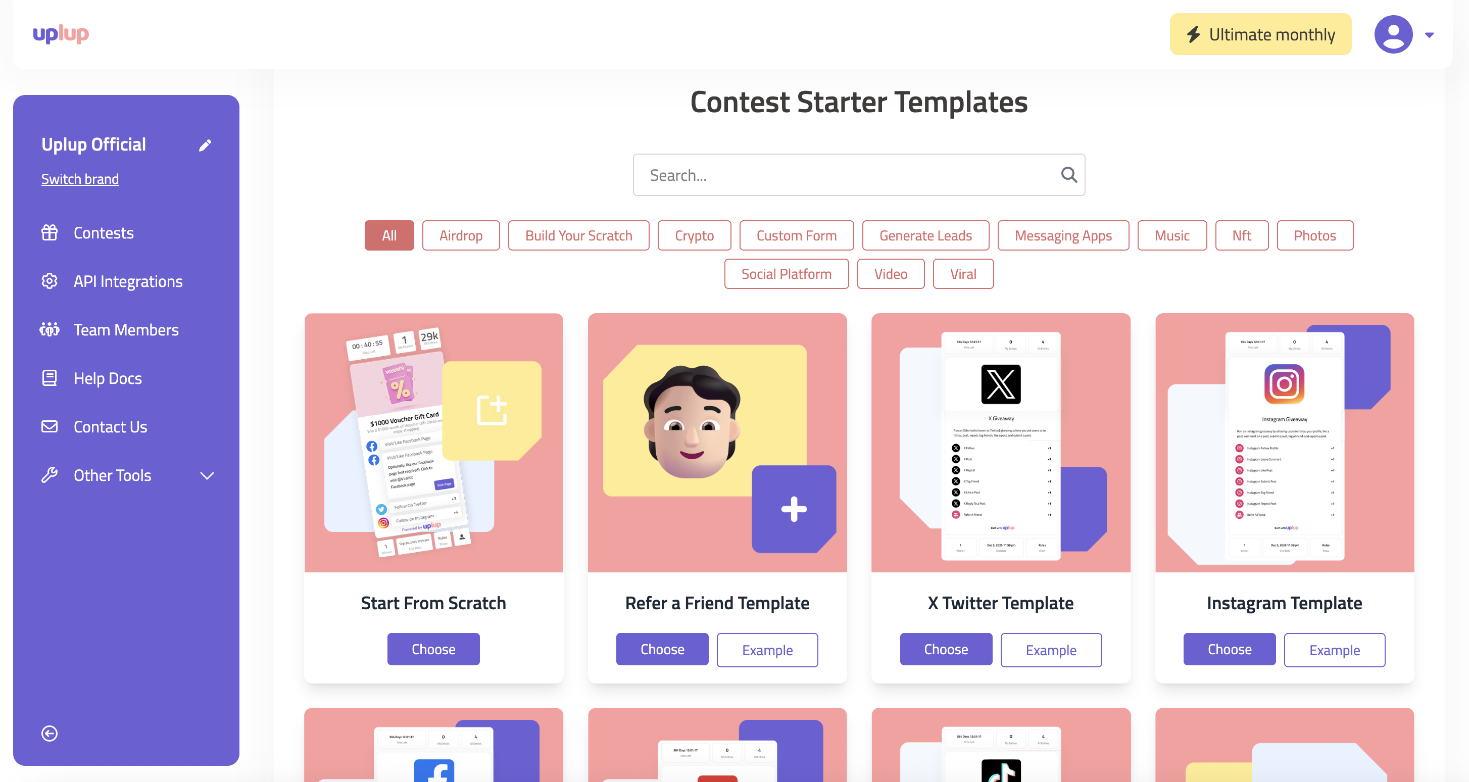 Uplup is a revolutionary AI tool for creating forms, quizzes, surveys, and contests. Our suite is designed to help grow your brand, customer leads, sales, visibility, and overall reach. Choose from a 60+ social media platform integrations, 50+ API integrations, 25+ CRM integrations, our native custom API, and more.