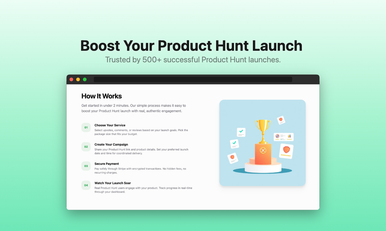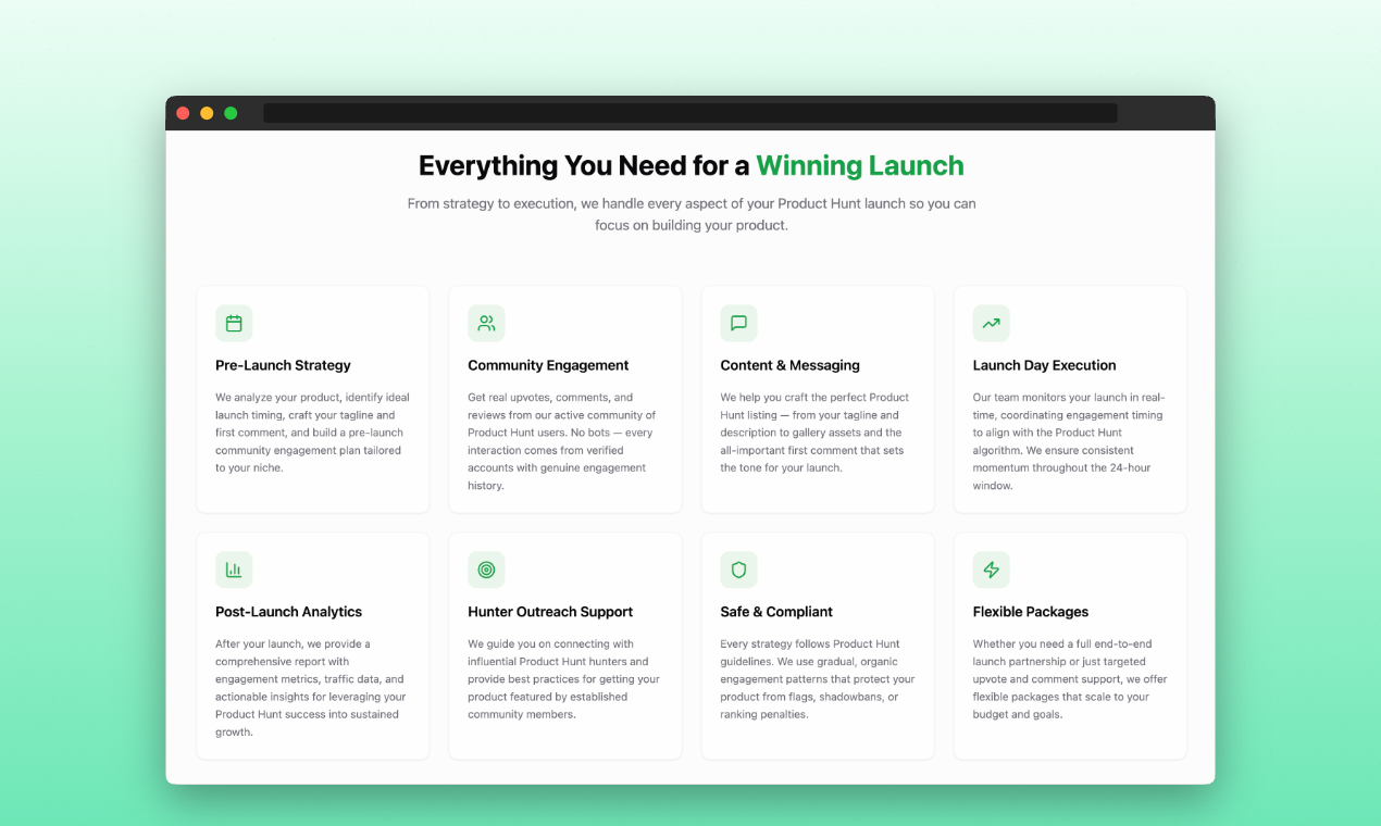 In addition to upvotes, the platform supports Product Hunt comments and engagement that contribute to overall launch performance. This helps founders improve not just ranking, but also perception, trust, and conversion from Product Hunt traffic.