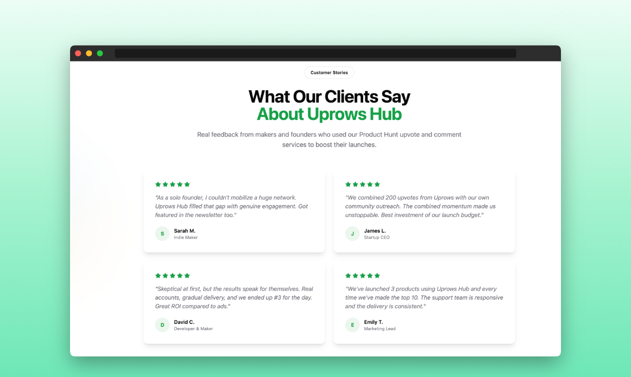 Uprows Hub connects products with real users across different regions and niches, ensuring engagement is genuine and not artificially generated. This allows startups to build credibility, attract attention, and create meaningful discussions around their product instead of relying on low-quality or bot-driven activity.