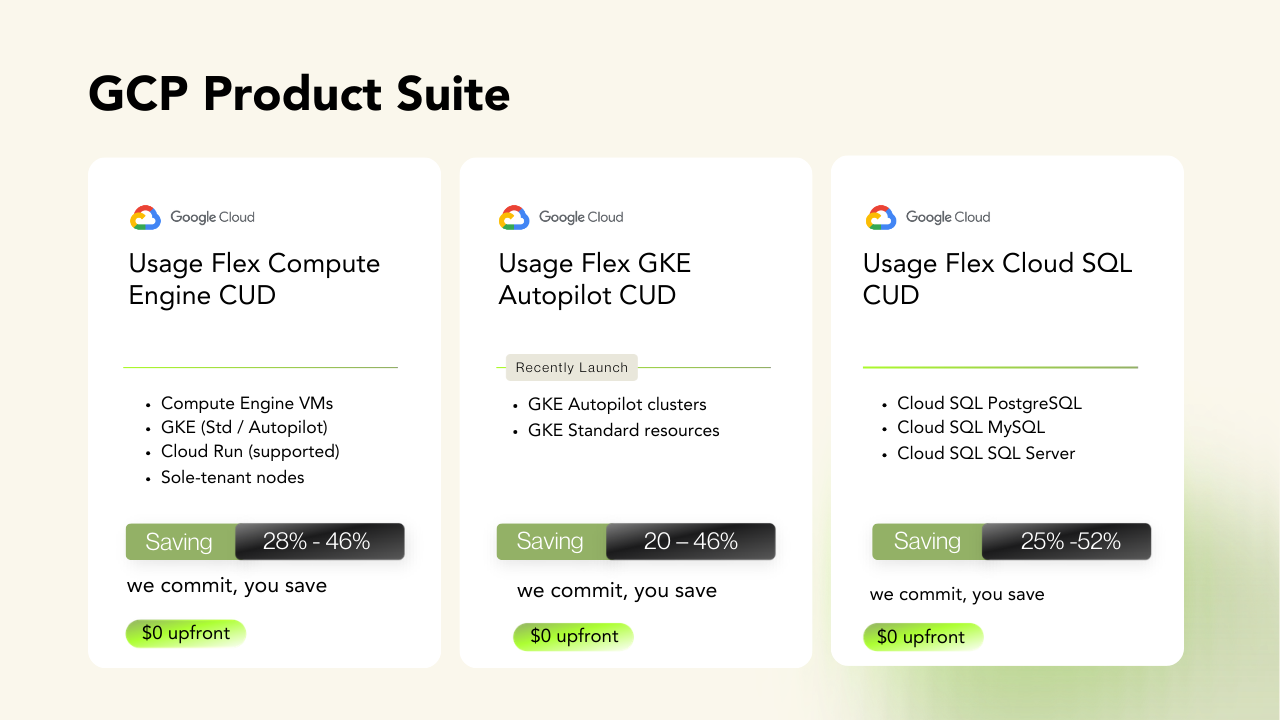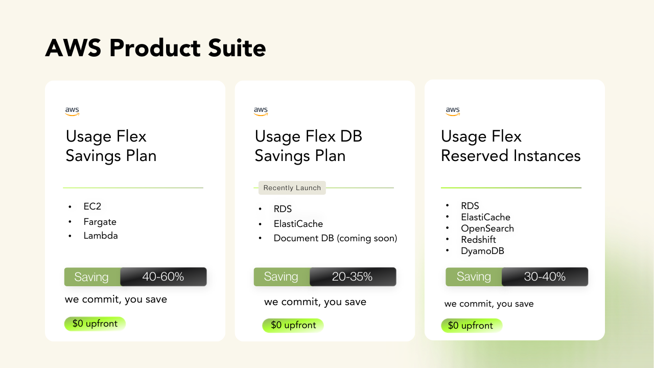 Our proprietary Flex Commitment products unlock deeper discounts across AWS, Azure, and GCP, including usage that standard Reserved Instances and Savings Plans cannot efficiently cover.