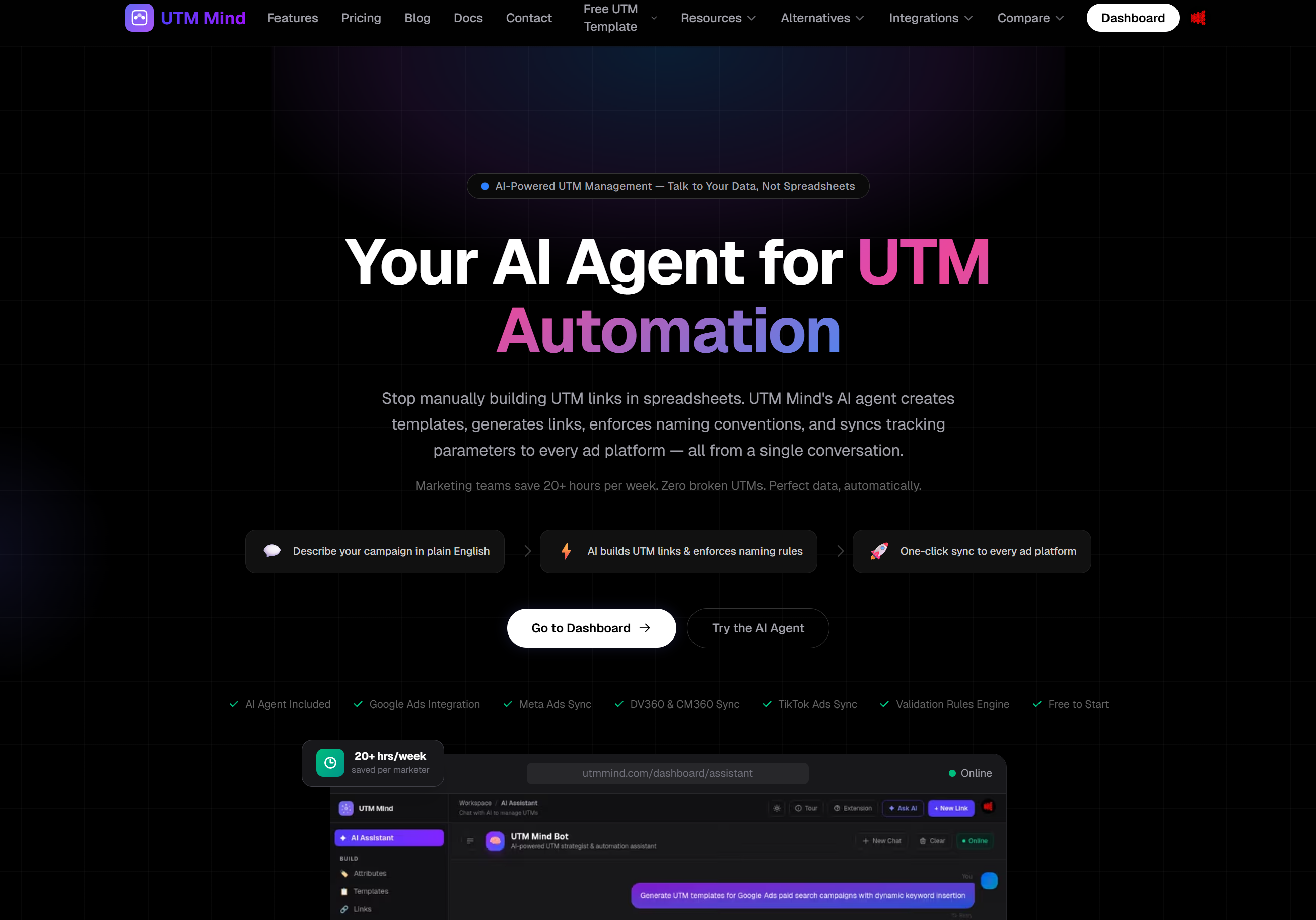 UTMMind (utmmind.com) is an advanced, enterprise-grade UTM link management and data governance platform designed to standardize marketing attribution across complex teams. Going far beyond basic URL builders or messy spreadsheets, UTMMind acts as a centralized command center for generating, organizing, and standardizing tracking links. It is specifically engineered for modern marketing workflows, ensuring that campaign data flowing into analytics tools (like GA4), CRMs, and Ads platform including Google Ads, DV360, Meta Ads