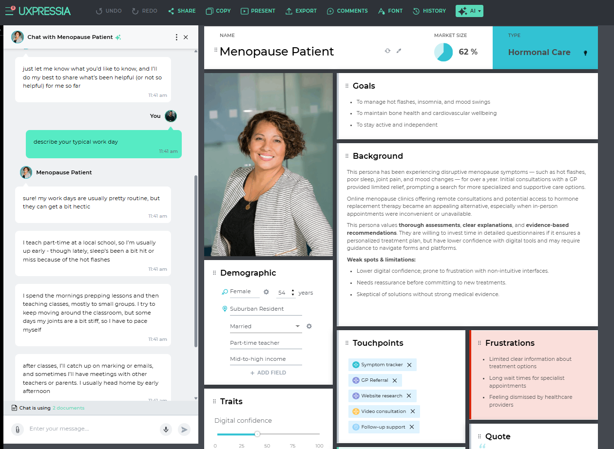 I love that you can actually make user flows that show interactions between personas. The functionality is easy to use and doesn't overcomplicate things. I have used basically every mapping software out there (I was actually hired to review these tools for a UX team) and I always come back UXpressia as it does what I need from customer journeys right through to Service Blueprinting. Review collected by and hosted on G2.com.