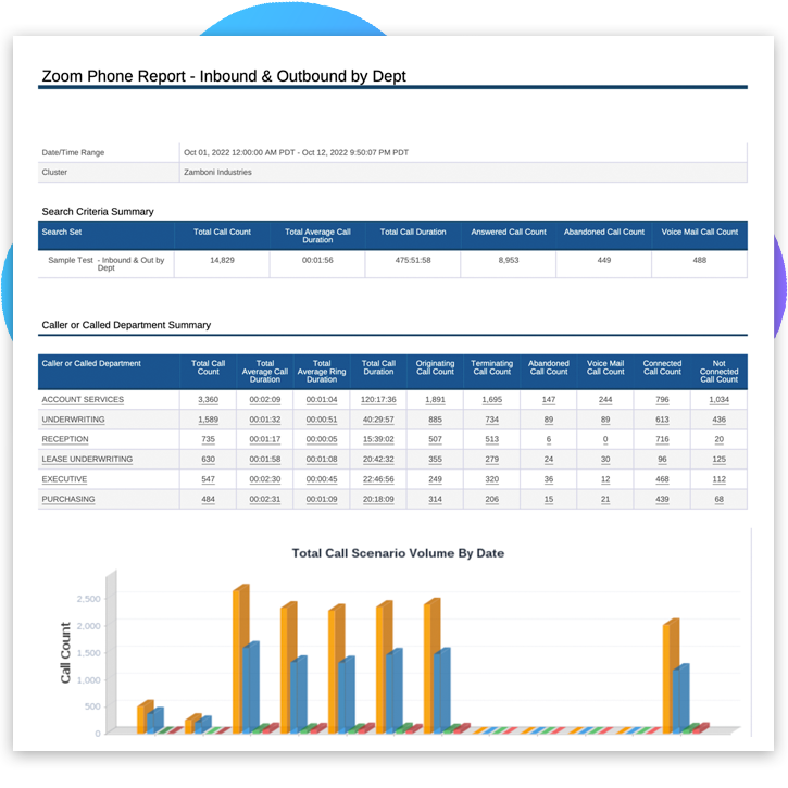 Variphy’s Call Analytics for Zoom Phone will allow you to search, analyze, and report on your team’s Zoom Phone call activity.